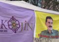 Di çalakiya standê de bê navber dirûşmeyên “Bê Serok APO”, “Bê Serok Jiyan Nabe” û “Ciwan Fedey APO ye” hatin qîrîn.