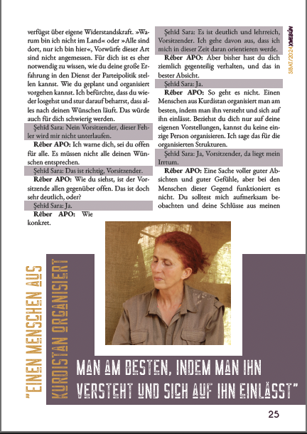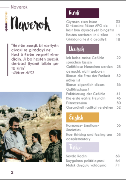 Hejmara nû ya kovara Xwebûn ji bilî tevkariyek di polîtîkkirina hestên xwe de, demek beriya ku Şehîd Sara vegere Ewropayê, diyaloga di navbera Şehîd Sara û Rêber APO de jî heye. Diyalog bi taybetî li ser girîngiya rêxistinkirina hestan e. Şehîd Sara tevgera xwe ya berê radixe ber çavan û rasterast xem û armancên xwe radigihîne. Xetereya rêberiya tenê bi hestan nîşan dide, lê di heman demê de girîngiya hestan jî nîşan dide.