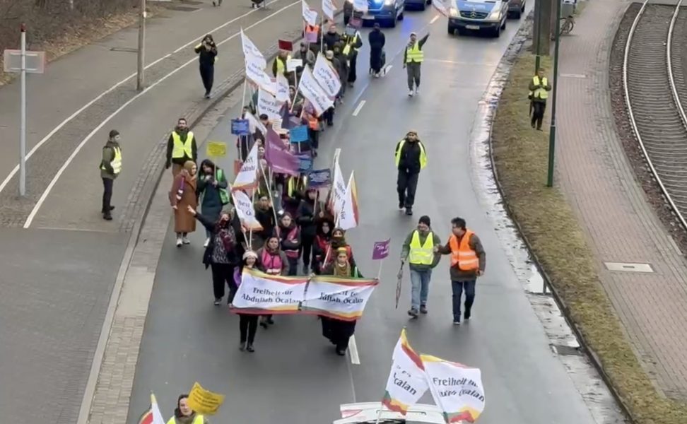 Di meşa ku li Laatzenê dest pê kir û bi coşeke mezin li stasyona trênê ya Hannoverê bi dawî bû, banga tevlîbûna meşa 17’ê Sibatê ya Kolnê û meşa “Rêwîtiya Azadî” ya ku wê di 9’ê Sibatê de li Mannheîm dest pê bike hat kirin.