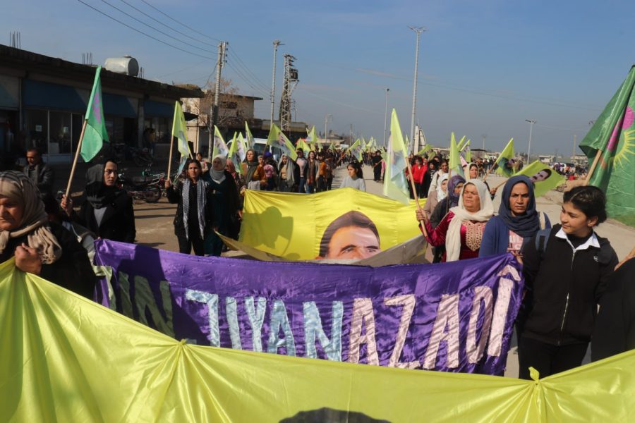 Kobanê– Li navçeya Keneyê ya bajarê Kobanê bi pêşengiya Yekitiya Jinên Ciwan li dijî esareta Rêber Apo ya ku zêdeyî 25 sal in dewam dike meşek hat lidarxistin. Meşa ku bi sedan jin û ciwan tevlî bûn, bi mîtîngekê dest pê kir û bi daxuyaniya çapemeniyê bi dawî bû. Di meşê de dirûşmeyên azadiya Rêber APO hatin berzkirin. Di meşê de pankartên wêneyên Rêber APO û pankarta “Tekbirina Komploya 15’ê Şibatê Serxistina Jiyana Azad e” hatin hilgirtin.