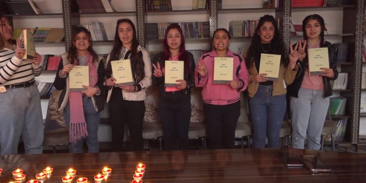QAMIŞLO- Meclisa Jinên Ciwan a PYD’ê li dijî hêzên faşîst û komploger ên hewl didin Komploya 15’ê Sibatê pûç bikin û bi şert û mercên girankirina tecrîdê rê li ber belavbûna fikir û felsefeya Rêber Apo bigirin, kampanyaya xwendina pirtûkên Rêbertî da destpêkirin. Îro jinên ciwan li bajarê Qamişlo Medîne Şebab (Navenda Ciwanan) hatin cem hev û dest bi xwendina pirtûka “Dewleta Kahîn a Sumeran” kirin ku yekemîn parastina Rêber APO ye. Koma ji 8 jinên ciwan pêk tê, armanc dike ku di pêşerojê de bi hev re xwendina xwe bidomînin û xwendina her 5 parêznameyên Rêber APO bi dawî bikin.
