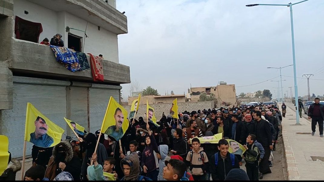 DÊRAZOR – Tevgera Ciwanên Şoreşger û Yekîtiya Jinên Ciwan bi rêveberiya sîvîl a herêma rojhilatê Dêrazorê re ji bo şermezarmkirina Komployê Navnetewî ya 15’ê Sibatê ya li dijî Rêber Apo û gelên Rojhilata Navîn meşekî li dar xistin.