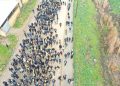Şêniyên Dêrik, Girkê Lêge, Çil Axa,Til Koçer û koçberên kampa Newroz li Qada Azadî ya bajarê Dêrikê kom bûn û dest bi meşê kirin.