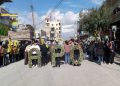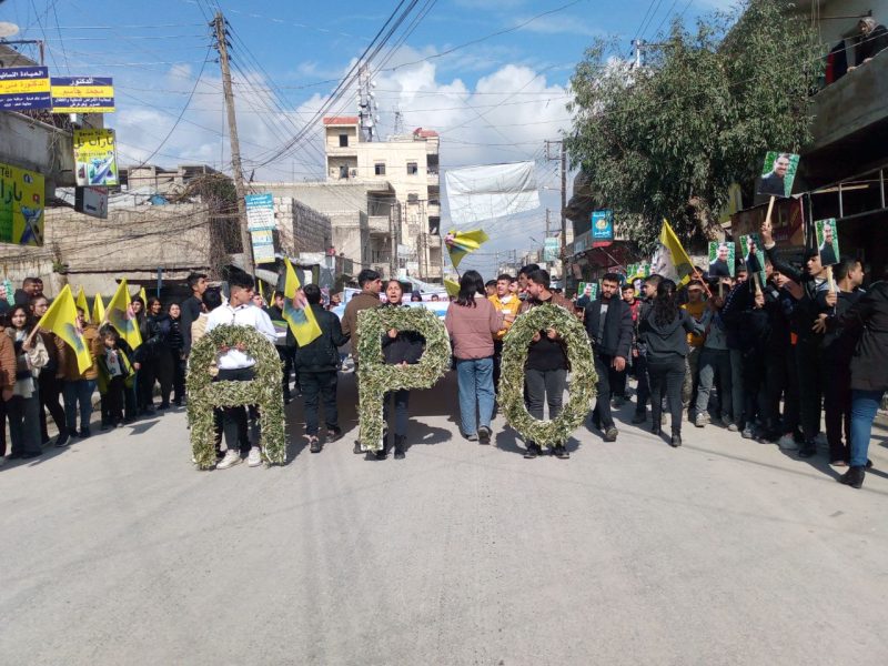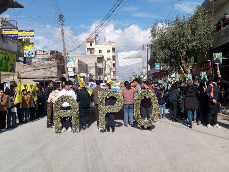 HELEB- Bi deh hezaran Kurd, Ereb, ciwan û jin li pêşiya Hola 8`ê Adarê ya li taxa Şêxmeqsûd a Helebê kom bûn û dest bi meşê kir.