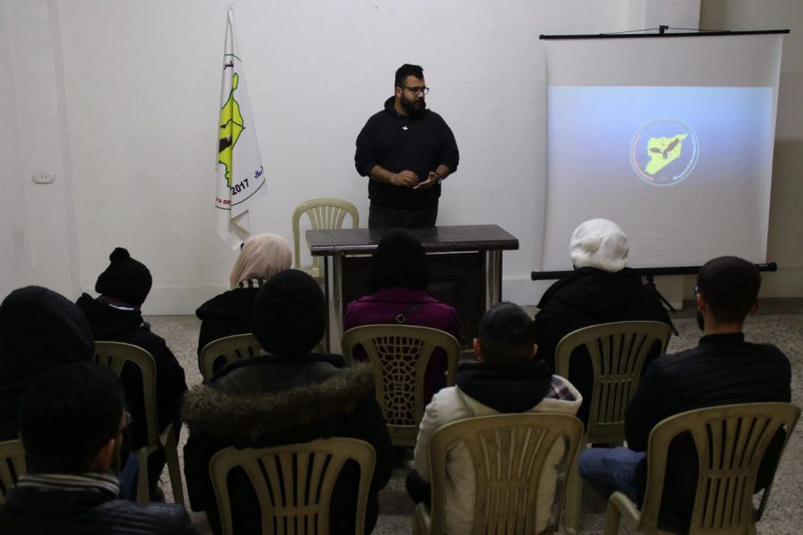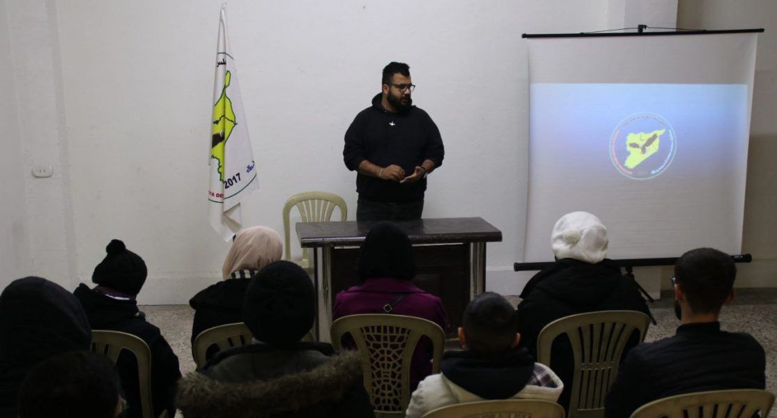 Bi amadebûn û beşdarbûna xwendekarên zanîngeha Helebê, dewreya xwendinê bi deqeyeke rêzgirtinê ji bo giyanê şehîdan dest pê kir. Piştre hevserokê Ciwanên MSD Nasir Nasiro dest bi axaftinê kir.