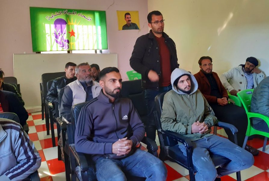 Li Tebqa Yekîtiya Jinên Ciwan derbarê zihniyeta zilamtsalar ji grupekî xortan dersekî da û beşdaran tevlî nîqaşê bûn.