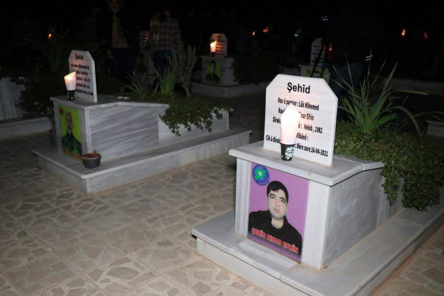 Piştre sînevîzyonek li ser jiyana herdu şehîdan hat pêşandan û beşdaran li ser gorên şehîdan mûm pêxistin.