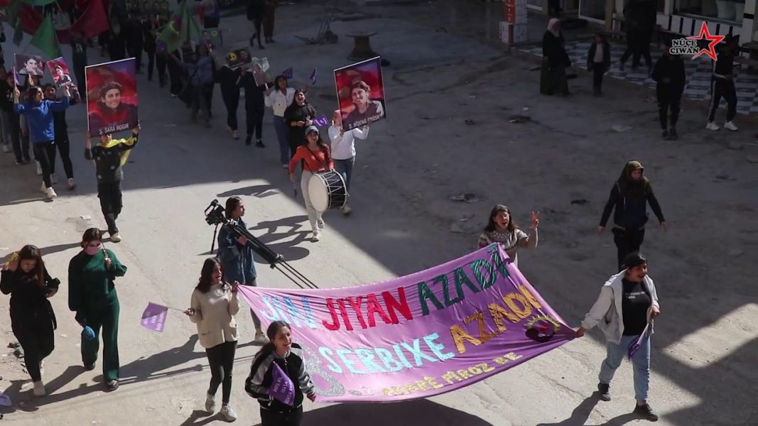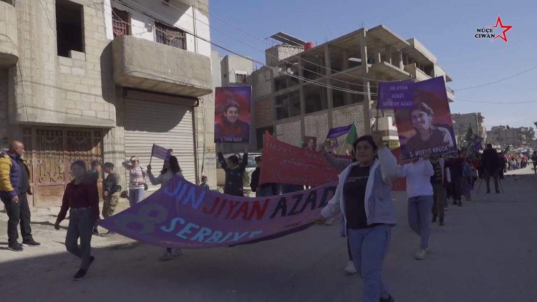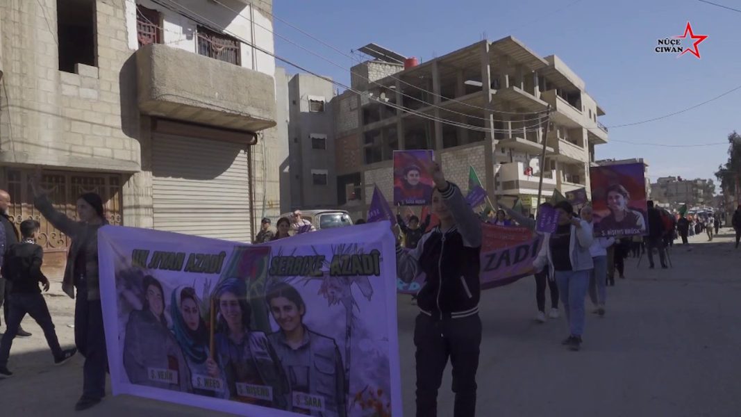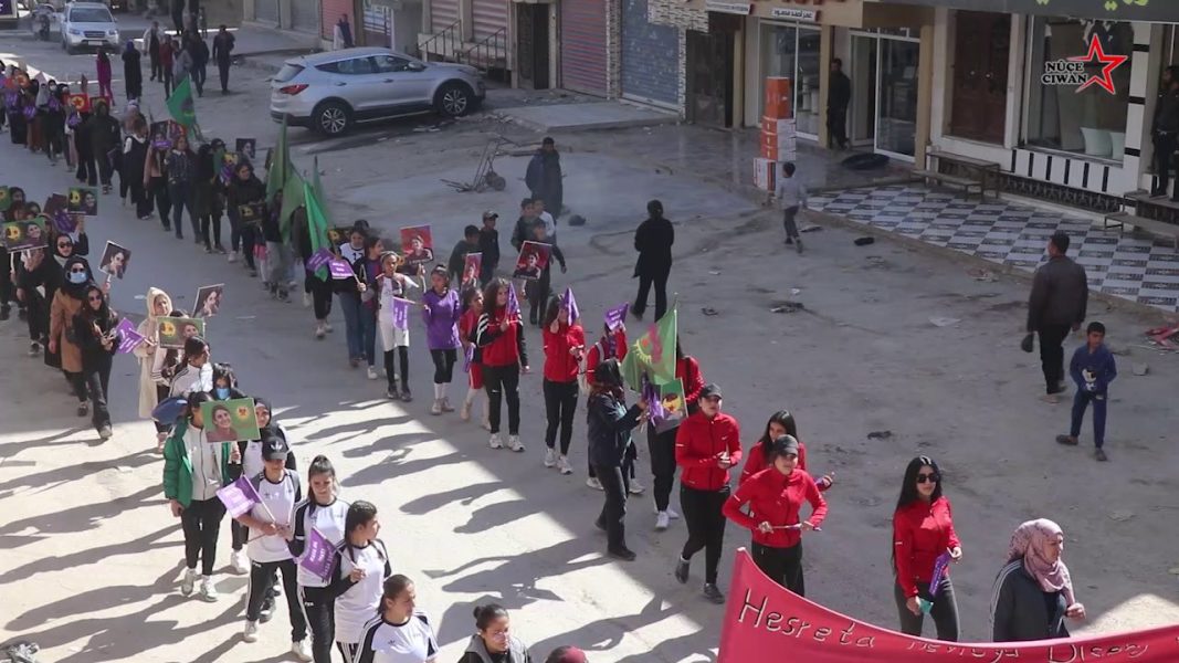 HESEKE- Di çarçoveya rêzeçalakiyên 8’ê Adarê de ku 24’ê Sibatê ji aliyê Platforuma Çalakiyên Hevbeş a Tevger û Rêxistinên Jinan ên Bakur û Rojhilatê Sûriyeyê hat ragihandin, bi pêşengiya Yekîtina Jinên Ciwan a Bakur û Rojhilatê Sûriyeyê jinên ciwan ên Hesekê meşekî girseyî li dar xistin.
