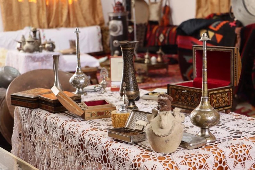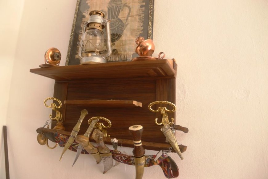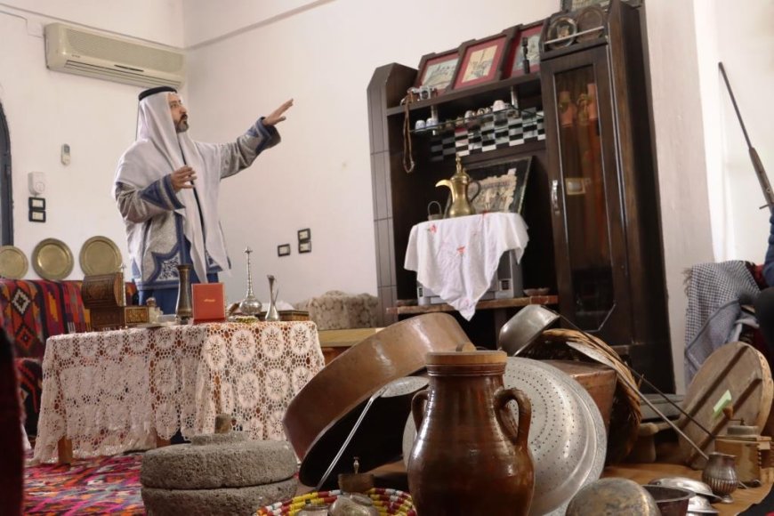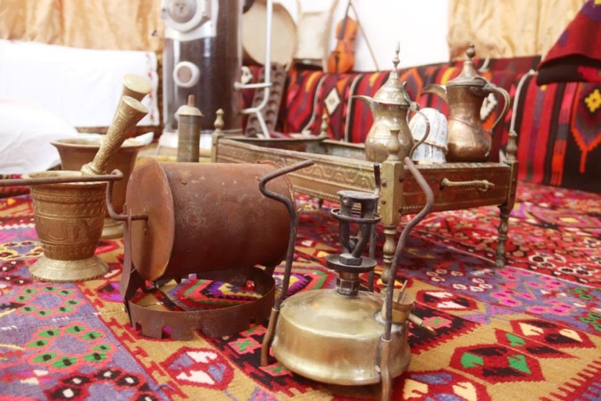 Der barê muzexaneya xwe ya biçûk de El Icêlî got: “Gelek tiştên kevnar hene, ji wan ên girêdayî rês, alav û ta, alavên çêkirina qehweya erebî. Her wiha bi sedan kevnareyên baqir hene û hin ji wan heta niha tên bikaranîn wek hawan, qehwedank û destara destan a qehweyê, tasên baqir, alava hevîrtirşikê ya textî.”