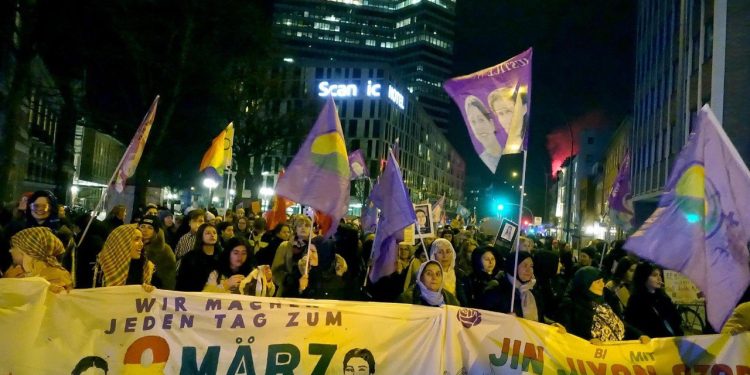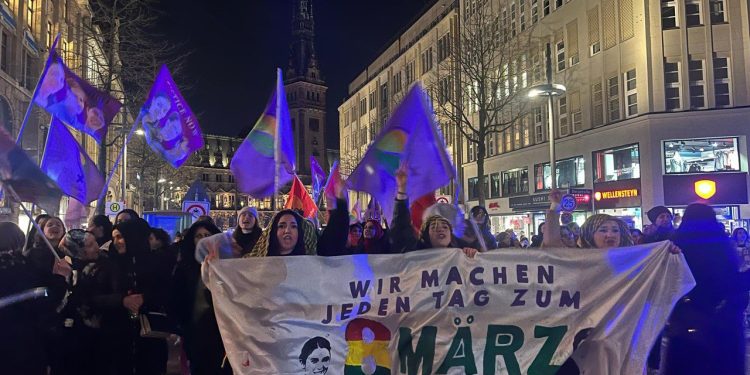 HAMBÛRG – Li Hambûrgê di 8’ê Adarê de ji aliyê îtîfaqeke berfireh a komên cuda û sendîkayan ve xwepêşandanek hate lidarxistin. Zêdeyî 9000 kes beşdarî xwepêşandanê bûn. Xwepêşandan bi pêşengiya tevgera jinên Kurd pêk hat. Çalakî ji aliyê TekoJIN a Hambûrgê û Meclîsa Jinê ya Rojbîn ve hate lidarxistin.