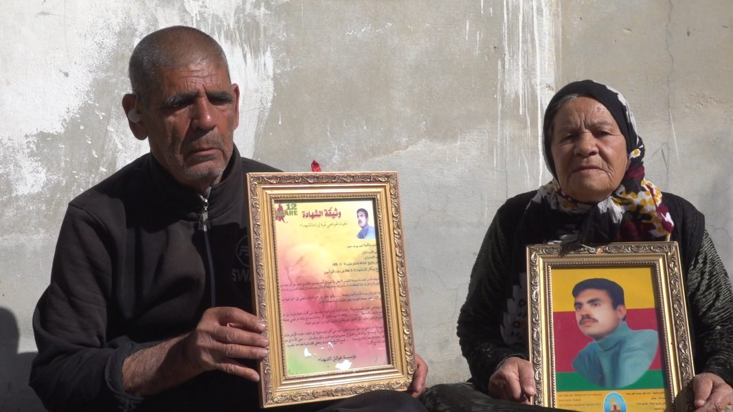 Ez 12’ê Adarê bibîrtînim. 12’ê Adarê di sala 2004’an de li bajarê Qamişloyê ev çêbû. Ez dişixulim, lawê min êvarê ji wî re (Şehîd Ehmed re) got: ‘Tu bi min re were Heseke? “Ezê herim cem xwîşka xwe’. Rabû, lawê min Ehmed got: ‘Wellah, ez nayem, ezê sibeh herim mubara, mubara heye. Heya tu here Heseke û vegere, encax mubara dest pê bike’. Ez jî sibê, roja înî bû, çûm serbesta xwe. Dora saet 10, Şehîd Ehmed, lawê min berê xwe da cem min. Min got “lawê min Ehmed, tu neçû Heseke?” Got “Na, wellah yabo, ez neçûm, min birayê xwe yê biçûk şand. Min rê kir basê û ez hatim.” Lawê min cem min meşiya, çû. Ew û Erkan bû. 20 gav ji min dûr ket, piştê xwe nerî, li aliyê min nerî. Min bang kir, min got “Ehmed, tu çima wilo dinerî?” Got “Yabo, ji xwe”. Çû pencî gavên din çû, gihîşt kolanê din û dîsa li piştê xwe li min nerî. Saet bû 12 ez çûm camiyê, min nîmêjê xwe kir, ez vegeriyam. Lawikekî cem min dişixuliya, min ji wî re got, “law, ev grad bibe malê”. Got camêrekî çadirekî da min, ser rêya Heseke, ezê herim ew çadirê bînim.