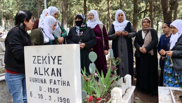 ÎZMÎR – Endamên TJA, DBP, Dayikên Aştiyê, ANYAKAY-DER û DEM Partiyê di nav de, çûn ser gora sembola Newroza sala 1990’an Zekiye Alkanê û ew bi bîr anîn.