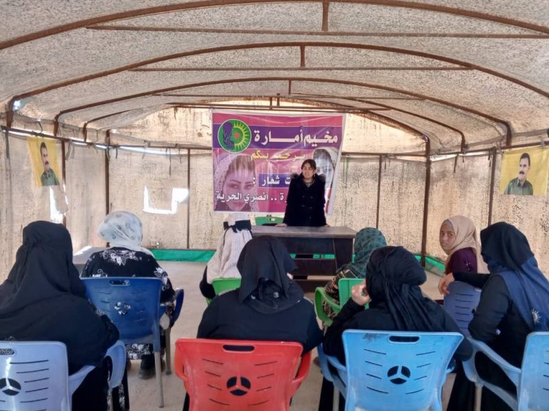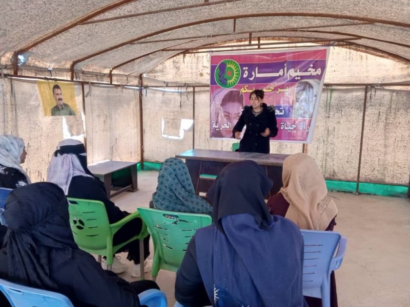 Beşdarên kampê, ji bo ku xwedî li fikir û felsefeya Rêber Apo derkevin û nasnameya resen a jina azad a ji bo azadiya jinê û azadiya gelan têdikoşe nas bikin, perwerdeya îdeolojîk dibînin.