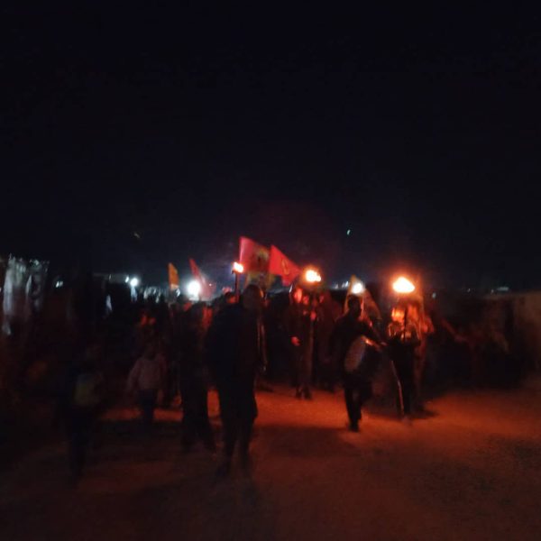 ŞEHBA – Îro bi pêşengtiya Tevgera Ciwanên Şoreşger û Yekîtiya Jinên Ciwan li Kampa Berxwedan a Şehbayê meşeke bi meşele li hemberî 6 sal ên dagirkirina Efrîn hat li dar xistin.