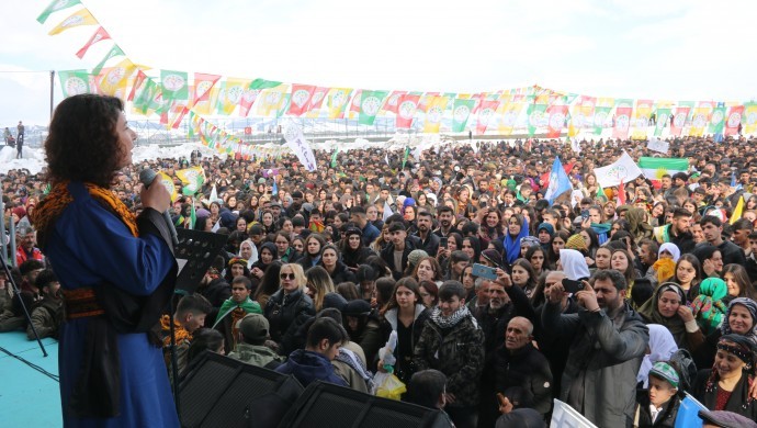 Bi destpêkirina Newroza ku bi deh hezaran tevlibûn dirûşmeyên “Bijî Serok Apo” , “Bijî berxwedana zindanan” , “Bê Serok jiyan nabe” û “Jin jiyan azadî” berzkirin.