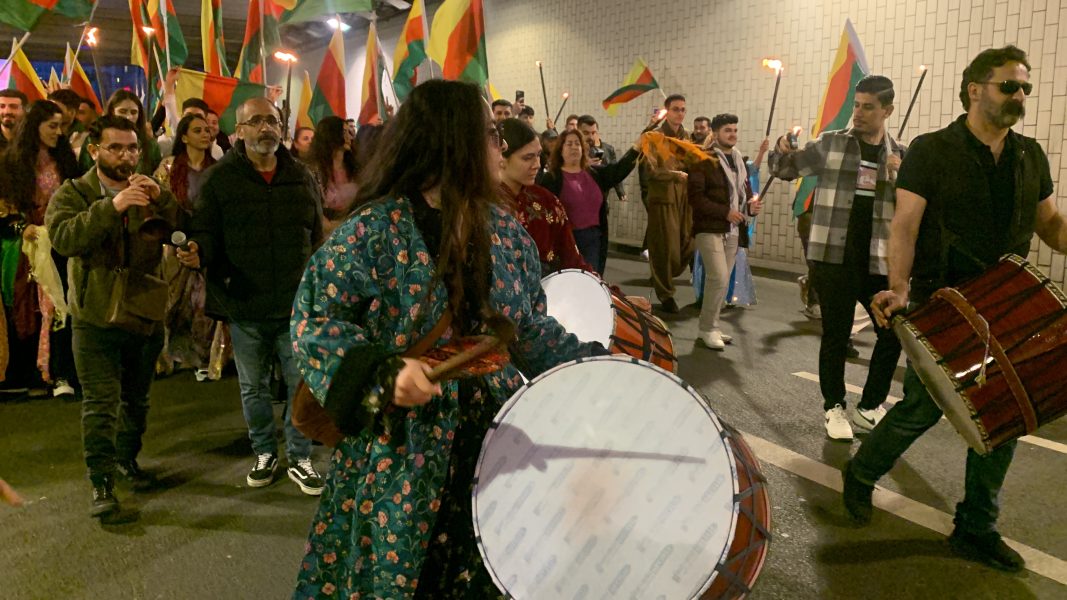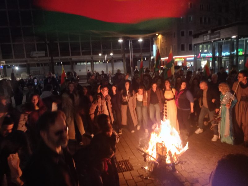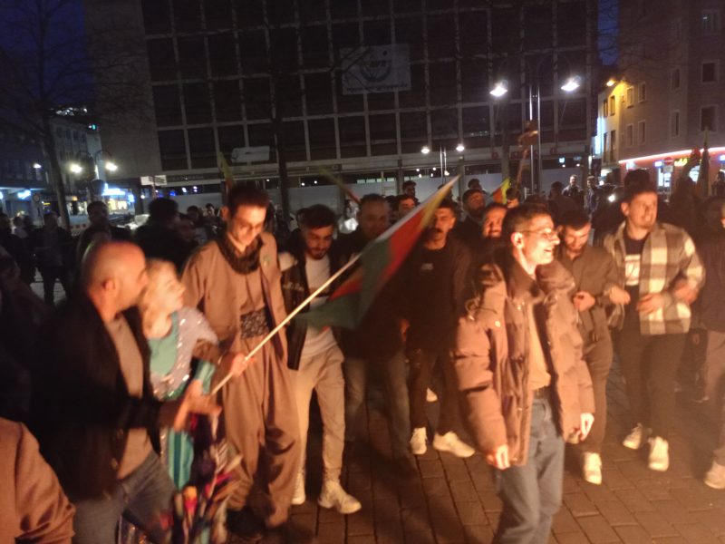 KOLN- Girse bi pêşengiya ciwanên endamên NRW TCŞ û TEKOJIN’ê li stasyona trenê ya Kolnê kom bûn û dest bi meşê kirin. Jinên ciwan û ciwanên ku bi cil û bergên neteweyî beşdarî çalakiyê bûn, li kolanên Kolnê bi dîlan û def û lûleyan geriyan.
