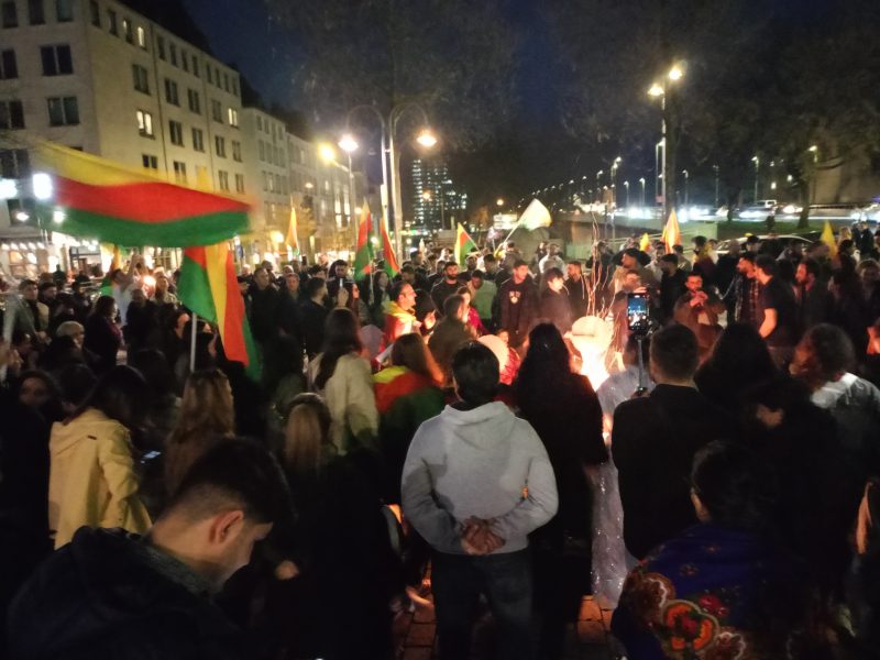 Di pîrozbahiya Newrozê de mizginiya çalakiyê ya îro ku li Gerîla TV hate weşandin û ji bo têkoşîna gelê Kurd xwedî girîngiyeke dîrokî ye, Kurdistanî û ciwanên APO li kolanên Kolnê timî dirûşmên “Bijî Serok APO”, “Bijî Berxwedana PKK” berz kirin.