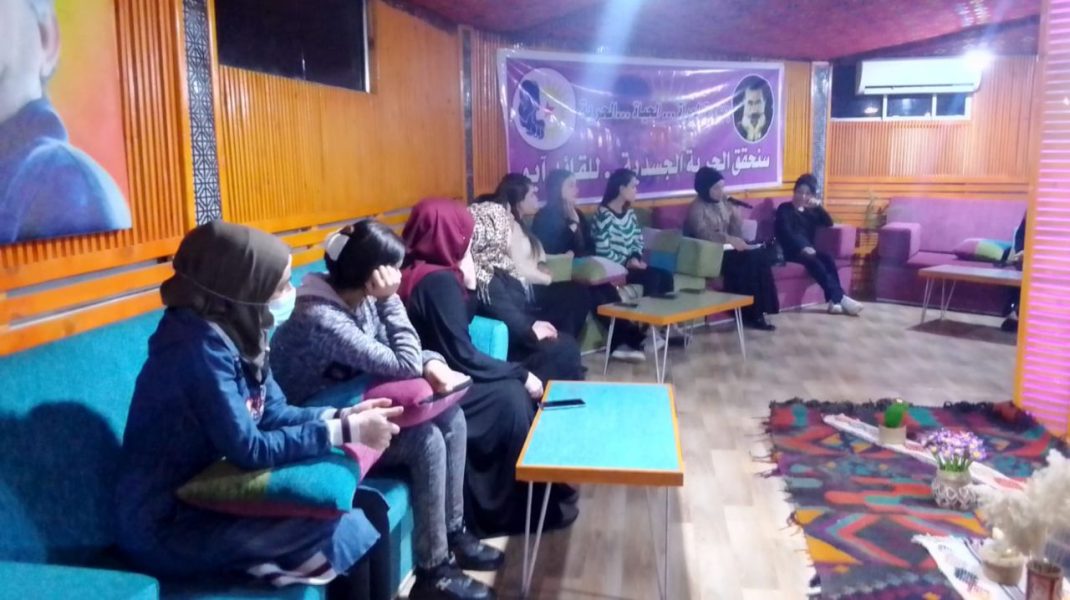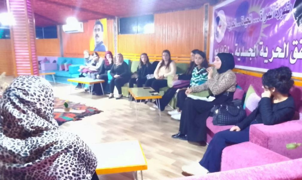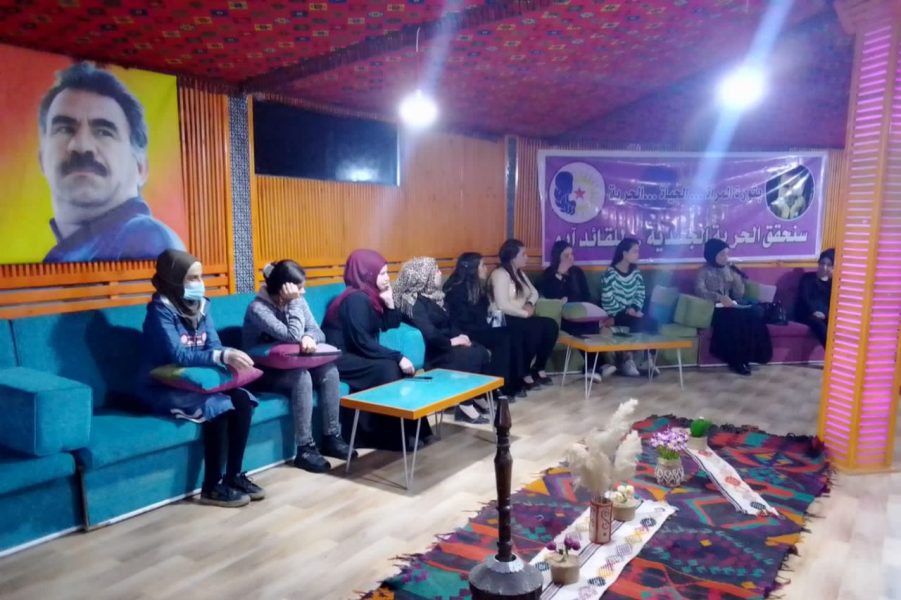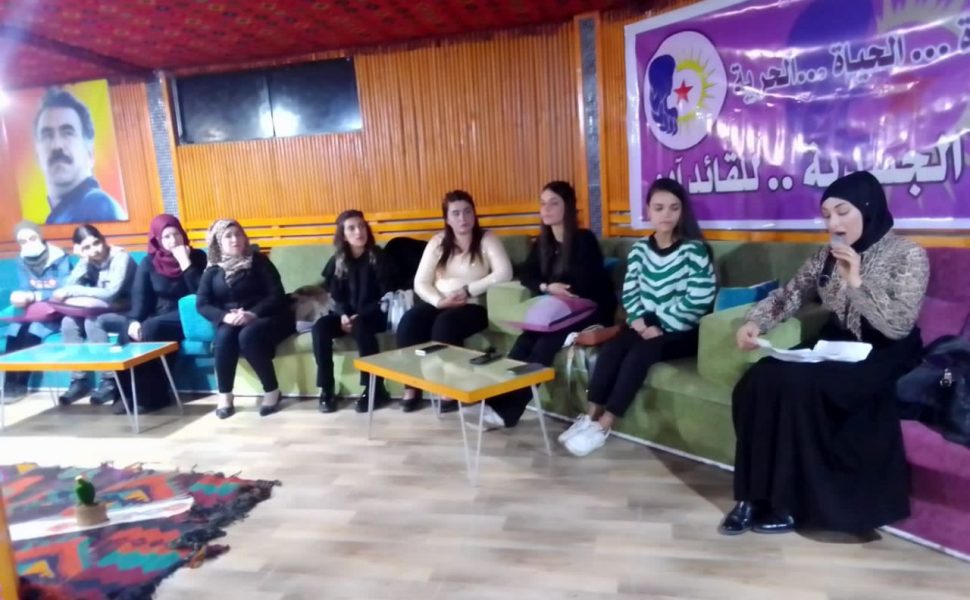 TEBQA – Di bin dirûşma “Jin, Jiyan, Azadî, Serbixe Azadî”, duh danê êvarê Yekîtiya Jinên Ciwan a navçeya Tebqayê bi beşdariya helbestvanên jin ên herêmê û bi amadebûna endamên Jinên Ciwan û Rêveberiya Xweseriya Demokratîk a navçeya Tebqayê şevbêrkeke helbestê ji jinan re li dar xist.