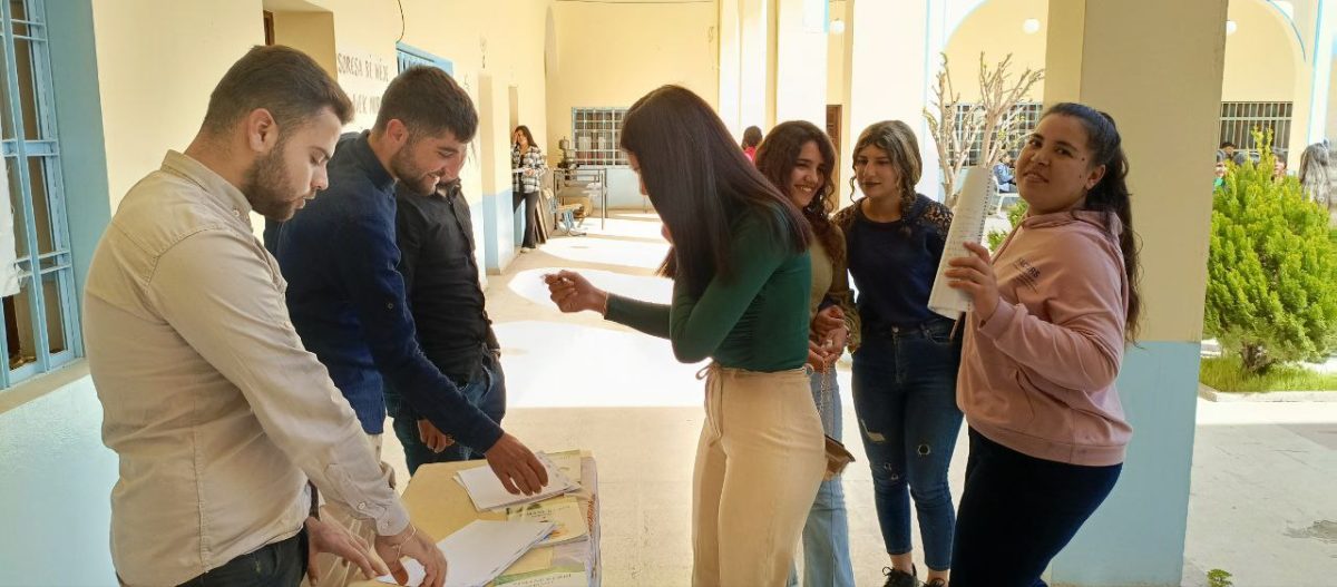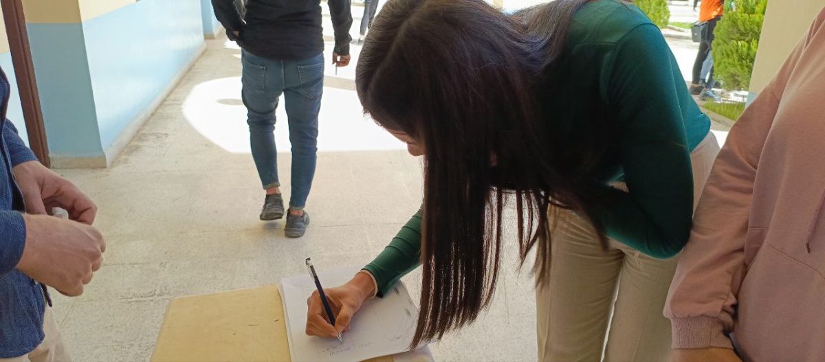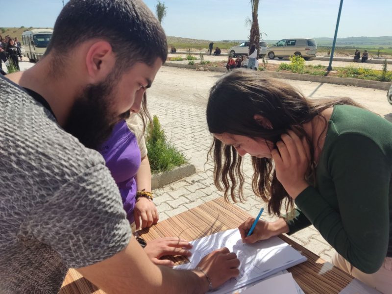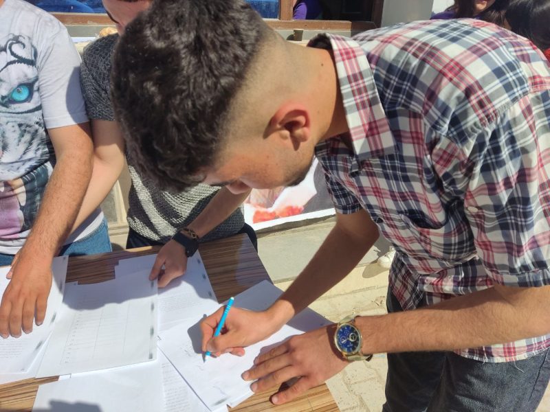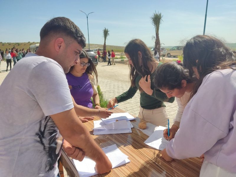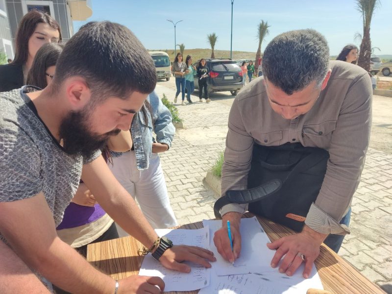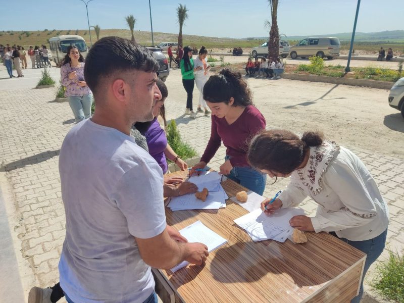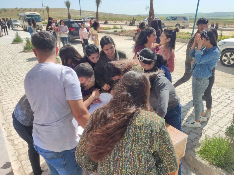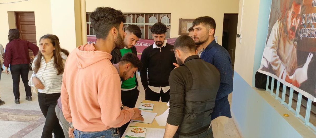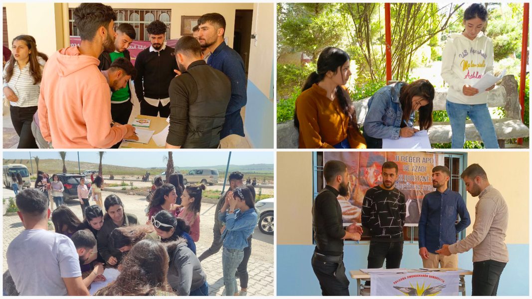 KOBANÊ – Yekîtiya Xwendekarên Demokratîk bi boneya 4’ê Nîsanê li Zanîngeha Kobanê îmza ji bo daxwaza azadiya fîzîkî ya Rêber Apo kom kirin.  Ev çalakî di çarçoveya hemleya komkirina imze ji bo Rêber Apo ya ku Înîsiyatîfa Gel de di bin slogana “Ji Rêber Apo re azadî, ji pirsgirêka kurd re çareserî” hate kirin.