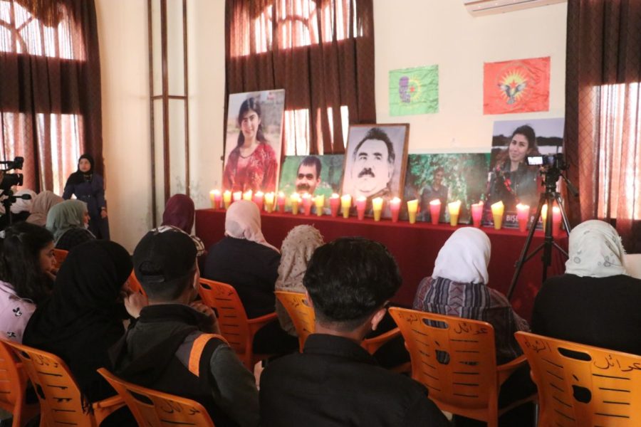 TEBQA – Yekîtiya Jinên Ciwan û Tevgera Ciwanên Şoreşger bi amadebûna nûnerên Rêveberiya Xweser a Parêzgeha Tebqayê û endam û endamên ciwan û jinên ciwan, li salona şehîdan merasîmek ji bo şehîdên azadî û têkoşînê li dar xist.