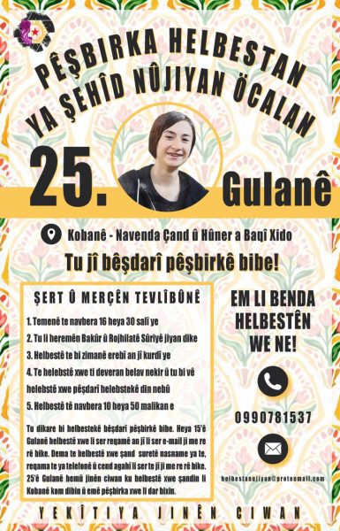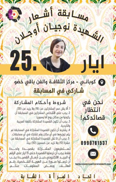 Di 25’ê Gûlanê vê hemû jinên ciwan ku helbestê xwe rê kirin li Kobanê kom bibin û emê pêşbirka xwe li dar bixin.