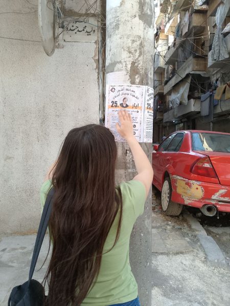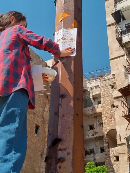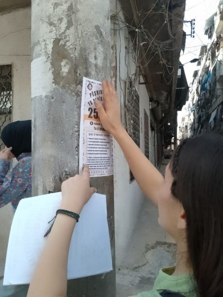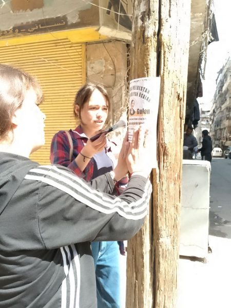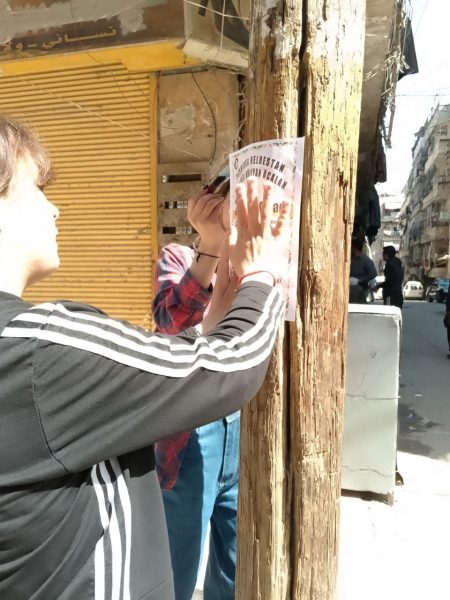 Endamên Yekitiya Jinên Ciwan niha ve afişên peşbîrkê li her derê belav dikin.