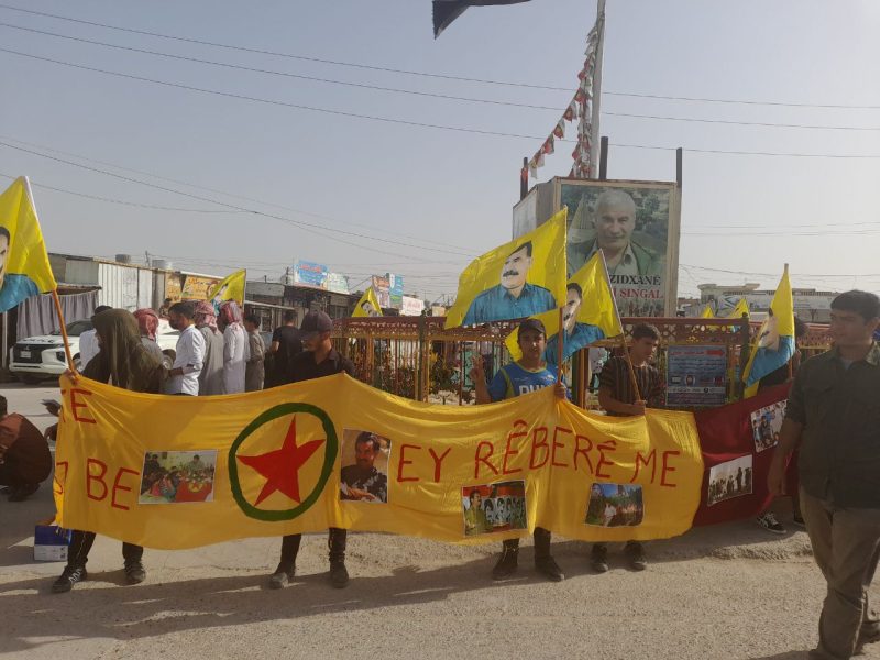 ŞENGAL- Doh li Şengalê li Dewraya Şehîd Mam Zekî ya Sînûnê bi pêşengtiya Yekîtiya Ciwanên Êzîdxanê ji bo bal kişandine tecrîda girankirî a li ser Rêber Apo bi coş û germahiyêk mezin çalakiyêk hate li darxistin.