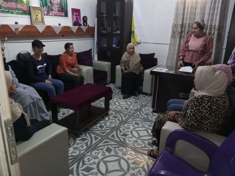 GIRKÊ LEGÊ – Yekîtiya Jinên Ciwan ên bajaroka Girkê Legê perspektîfên Rêber Apo ji bo jinên ciwan xwendin û nîqaş kirin. 10 jinên ciwan beşdarî çalakî bûn.