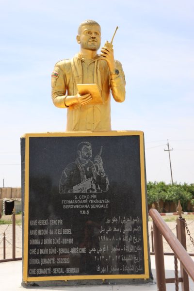 ŞENGAL- Fermandarê YBŞ’ê Pîr Çeko ku di 27’ê Adara 2023’yan de di encama êrîşa hewayî ya dewleta Tirk a dagirker de li gel heverêyê xwe Agir Cefrî şehîd bûn, îro bi merasîmekê perde ji ser peykerê Pîr Çeko hate rakirin. Di merasîmê de peyama tolhildana şehîda hate dayîn.