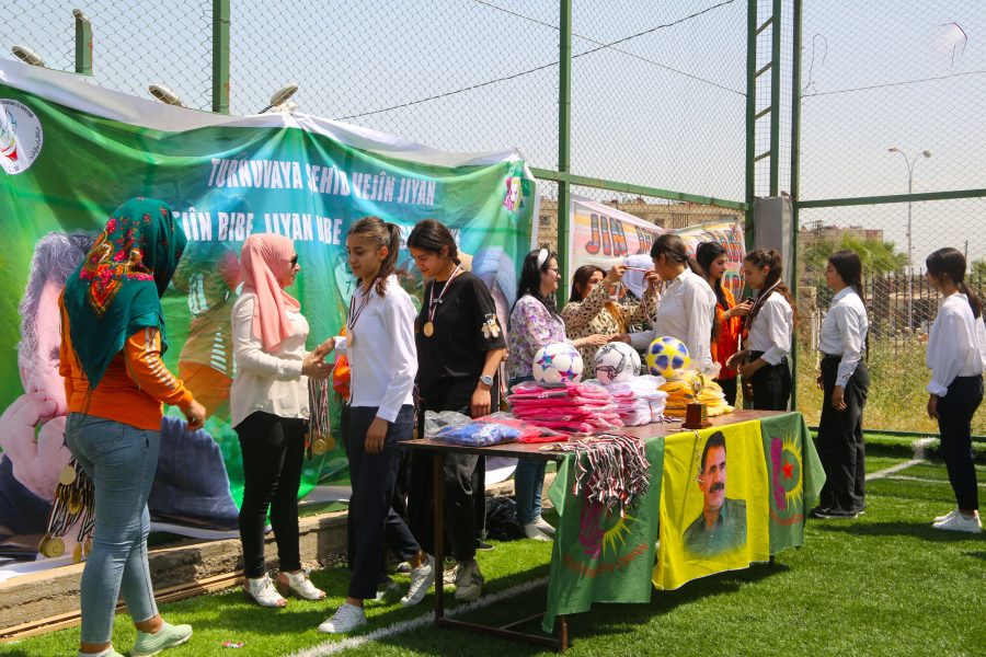 QAMIŞLO – Turnoveya futbolê ya Şehîd Vejîn Jiyan a bi diruşmeya “Vejîn bibe, jiyan dibe, azad spor bike” îro li Yarîgeha Dostaniyê ya Norwêcî, li hundirê navenda Encûmena Werzîşê ya bajarê Qamişlo bi dawî bû. Turnove ji aliyê Yekîtiya Jinên Ciwan, Desteya Ciwan û Werzîşê, Meclîsa Werzîşê ya Cizîrê û Desteya Perwerdeyê ya Cizîrê hat li darxistin û 3 roj berdewam kir. Hemû jinên ciwan ên ku di turnuve de cih digrin xwendekarên dibistanên navîn û amadehî yên bajarê Qamişlo ne.
