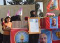 Merasîma bi birina cenaze ji pêşiya nexweşxaneya Firatê ber bi Goristana Şehîdan ve dest pê kir. Li wir, di serî de deqayeke rêzgirtin ji bo bîranîna tevahî şehîdên şoreşê hat rawestîn. Piştre berdevkê hêzên Meclîsa Leşkerî ya Minbicê Xelîl Qehraman û Cuma Heyder axivîn û behsa lehengî û fedekariya şehîdan û têkoşîna wan kir.