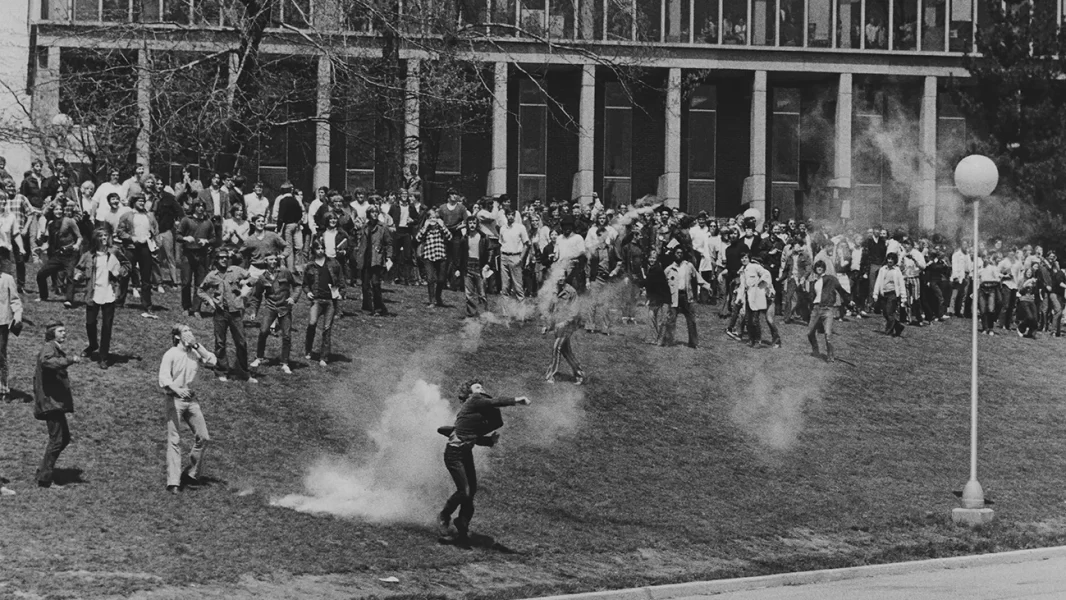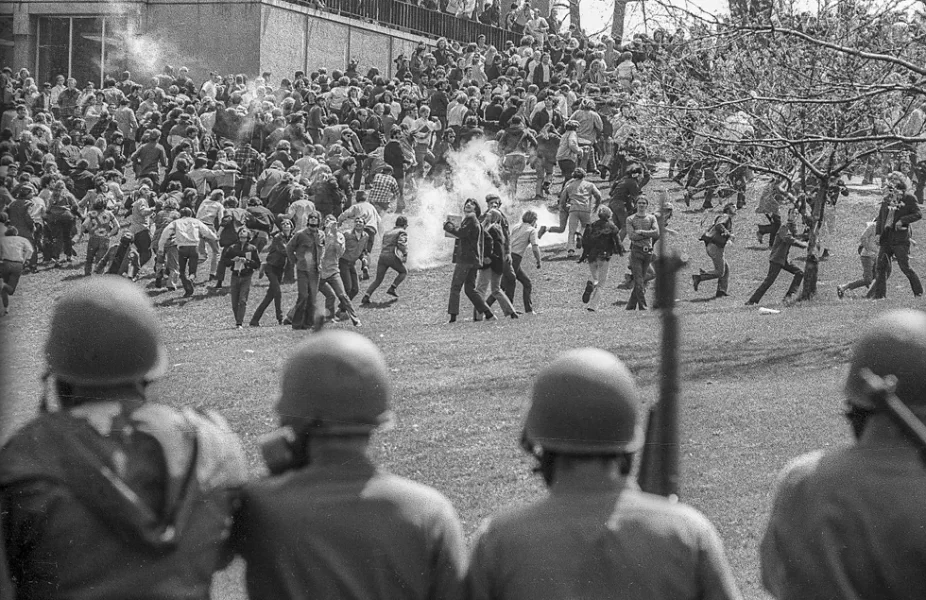 NAVENDA NÛÇEYAN – Di 4’ê Gulana 1970’an de bi qasî 2000 xwendekar li qada Zanîngeha Kent State ya eyaleta Ohio, li dijî dagirkirina Kamboçya ya Dewletên Yekbûyî yên Amerîkayê wekî beşek ji Şerê Vîetnamê, ku Serokdewlet Nixon di 30’ê Nîsanê de ragihandibû, çalakiya protestokirinê li darxistin.