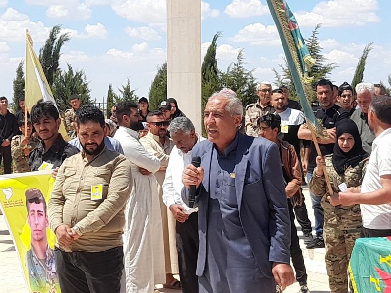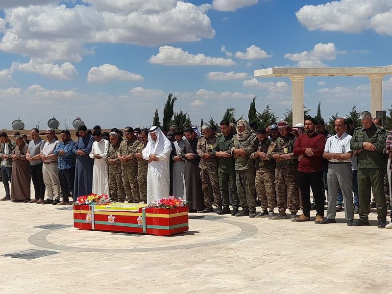 REQA – Şêniyên bajarê Reqayê cenazeyê şervanê Hêzên Sûriyê Demokratîk (QSD) Qadir Rojava (Raqî Mûsa) ê ji Girê Spî, ku di 29’ê Nîsanê 2024 de şehîd bibû li goristana şehîdan oxir kirin.