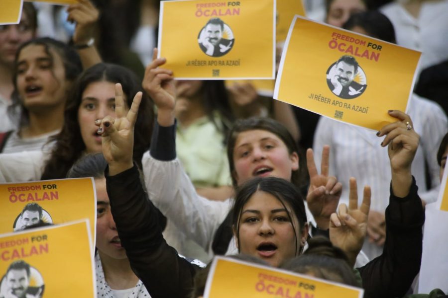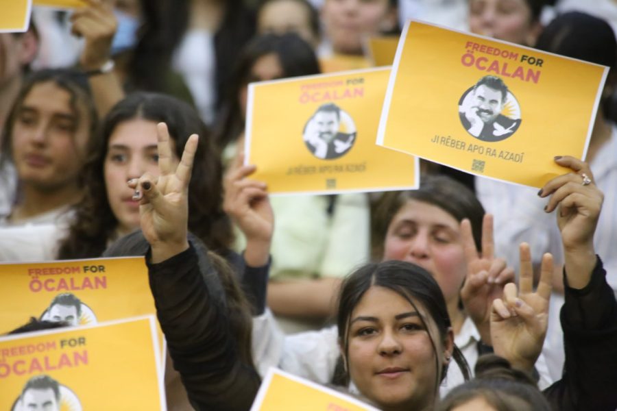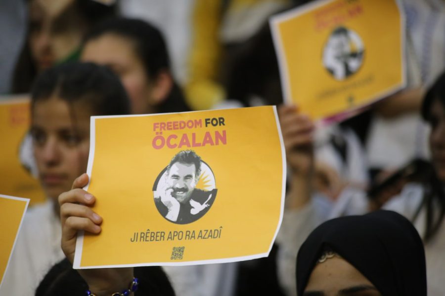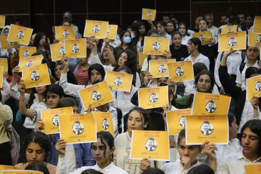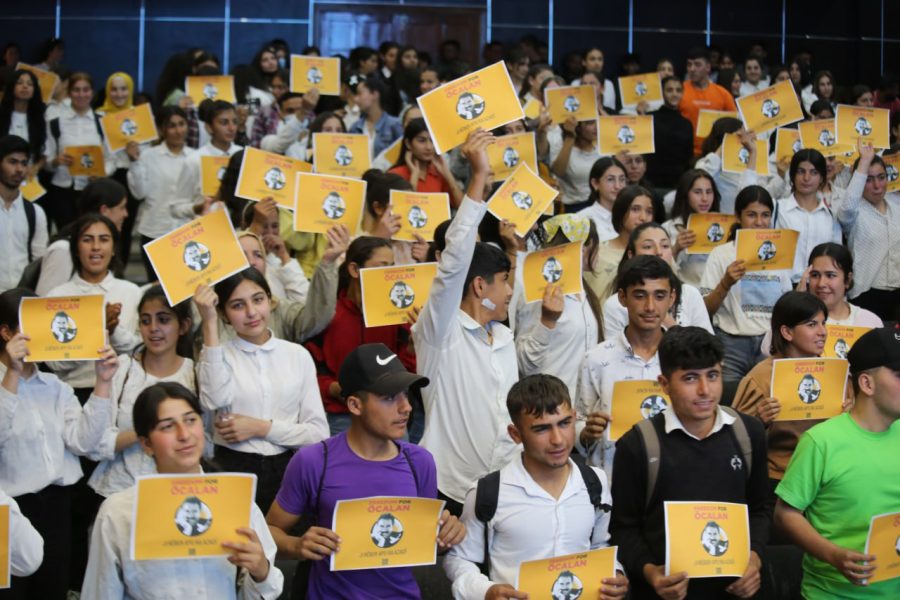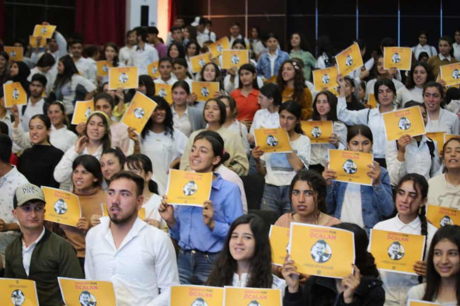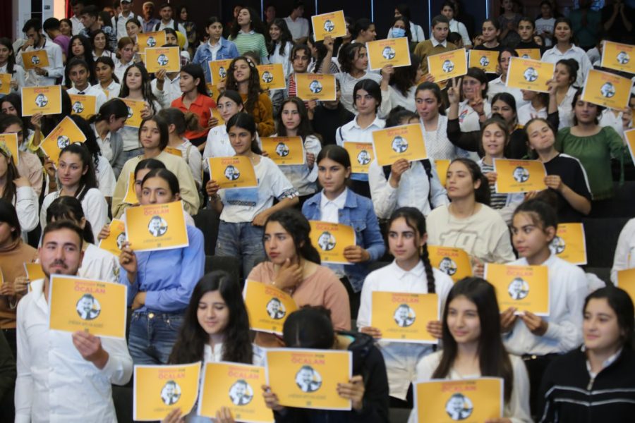 Di dawiyê de ciwanan wêneyên Rêber Apo hildan û diruşmeya “Azadî ji bo rêberê netewî” hat berz kirin.