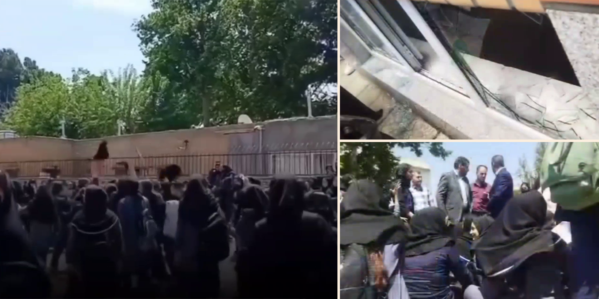 Jinên Ciwan di dibistanê de kom bûn ji ber rêverberiya dibstinanê di 7’ê Gulanê de jinekê ciwan lêda yê, ji ber ku ew hijab bi kar neanî. Jinên Ciwan û xwendekarên dibistanê reflexên tund li hemberî vê nişan dan û ber dibistanê kom bûn û dijî rêverberiya dibstanê slogan gotin. Çend xwendekarên hijabên xwe avetin û kamera û pencere dibistinan şkandin. Di we dibistanê de di sala borî de xwendekarên bi gaza kîmyasal hatin êrîş kirin. Wan xwendekaran ji ber we jî edî rastiya we tûndiyê dizanîn û bi wî rengî li hemberî tûndiya rejîma Îranê li hemberî Jin û Jinên Ciwan helwesta xwe nişan dan.