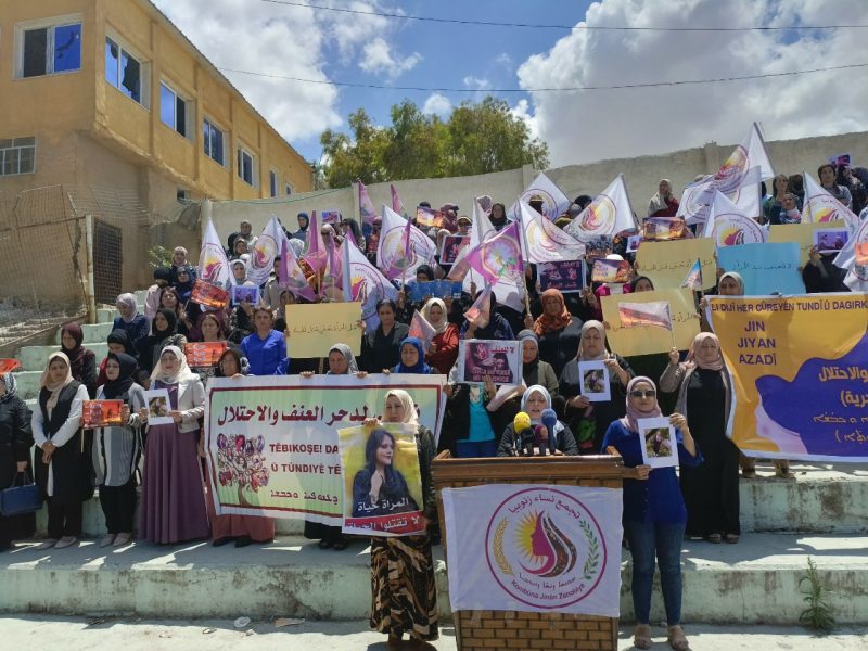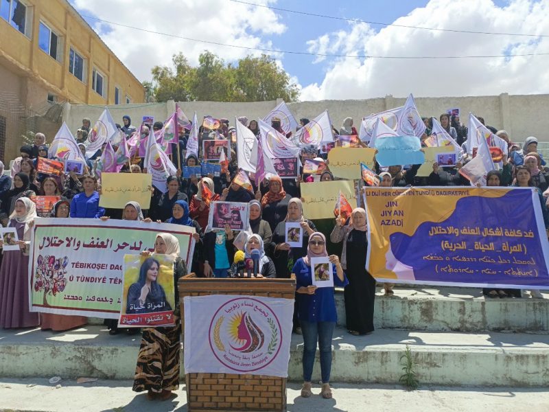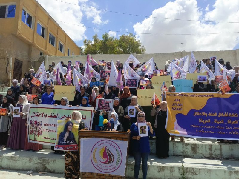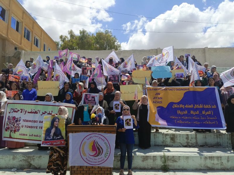 MINBIC – Kombûna Jinan a Zenobiya ya Minbicê li dijî qetilkirina jin û tûndiya li ser jin îro nîvro li stadyuma şaredariyê daxuyaniyekî da.