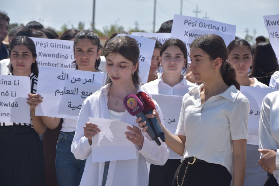 Xwendevanên Mexmûrê ji bo mafê xwendina zanîngehê meşiyan