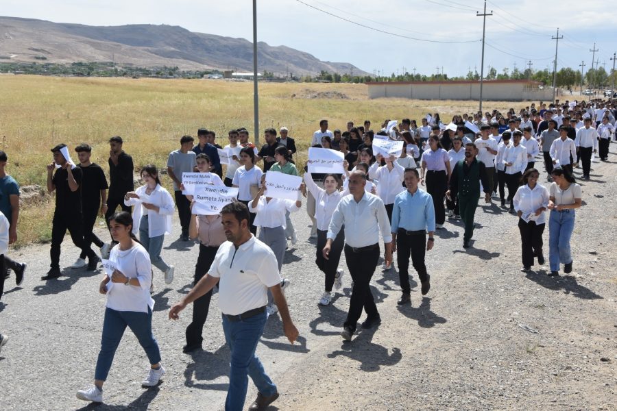 Meş ji Dibistana Amadeyî ya Şehîd Koçerîn destpêkir û heta seytereya Iraqê berdewam kir. Di meşê de pankartên bi zimanê Kurdî û Erebî ku têde ‘xwendin mafekî gerdunî ye’ hatibûn nivîsîn hatin hildan.