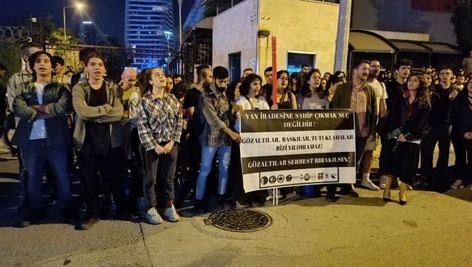 Di 15’ê gulanê de li Îzmîrê bi ser malan de hate girtin û 16 kes hatin binçavkirin. Piştî karûbarên îfadegirtinê yên li emniyetê, duh sewqî edliyeyê hatin girtin. Her 16 kes ku endamên Partiya Azadiya Civakî (TOP), Partiya Karkeran a Tirkiyeyê (TÎP), Înîsiyatîfa Têkoşîna Sosyalîst, Ciwanên Demokrat a Nû û Halkevlerî jî di nav de bûn, ji ber tevlibûna çalakiyên li dijî xespkirina îradeyê ya li Wanê hatin lidarxistin, bi îdiaya “muxalefeta li dijî qanûna meş û xwepêşandanan” û “Ji bo peywirê nedin kirin li ber xwe dane” hatin tawanbarkirin.