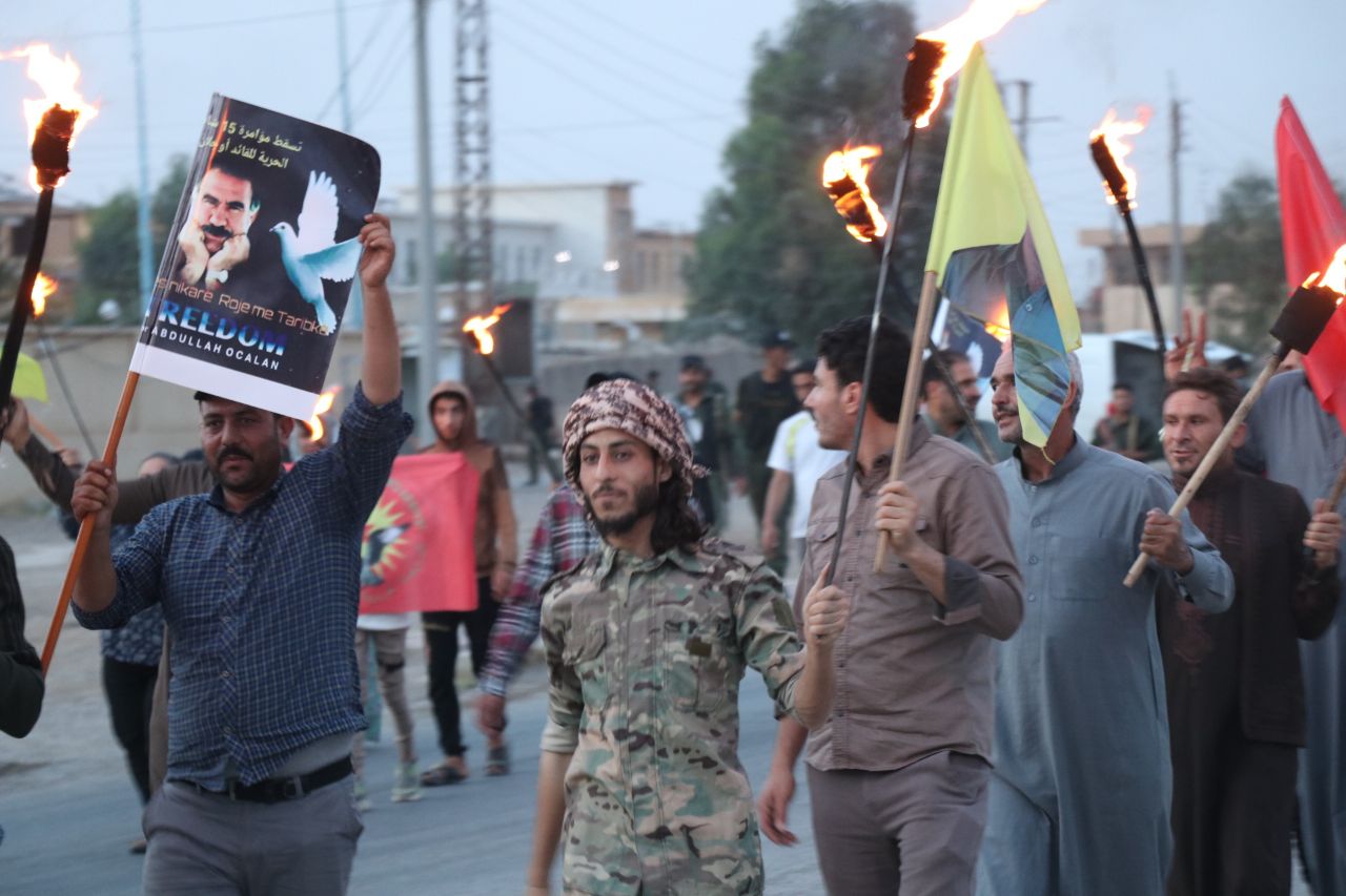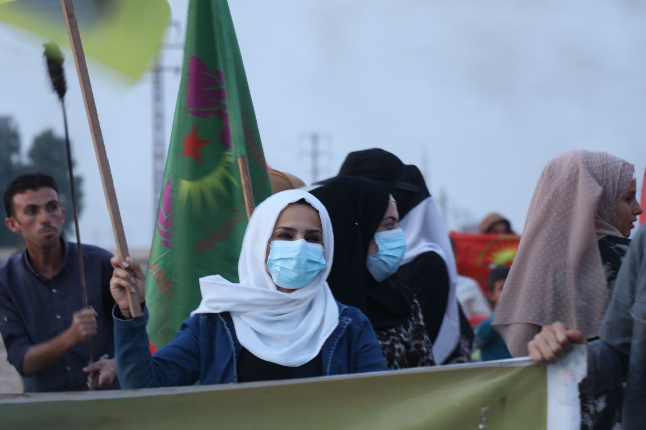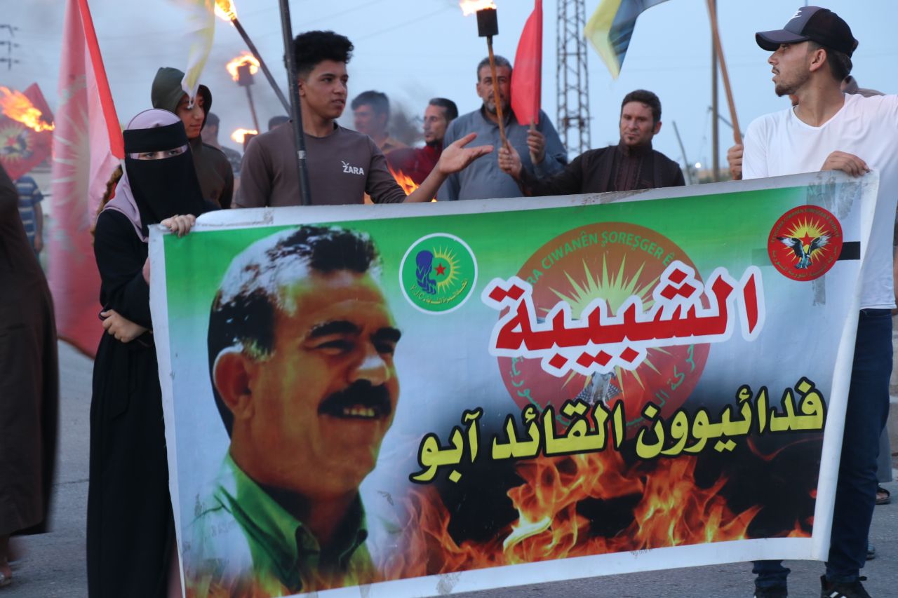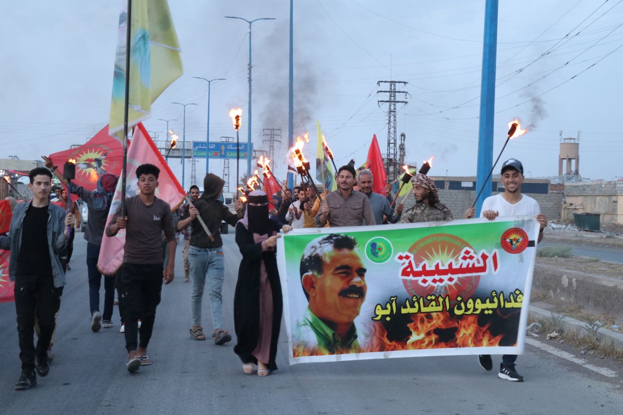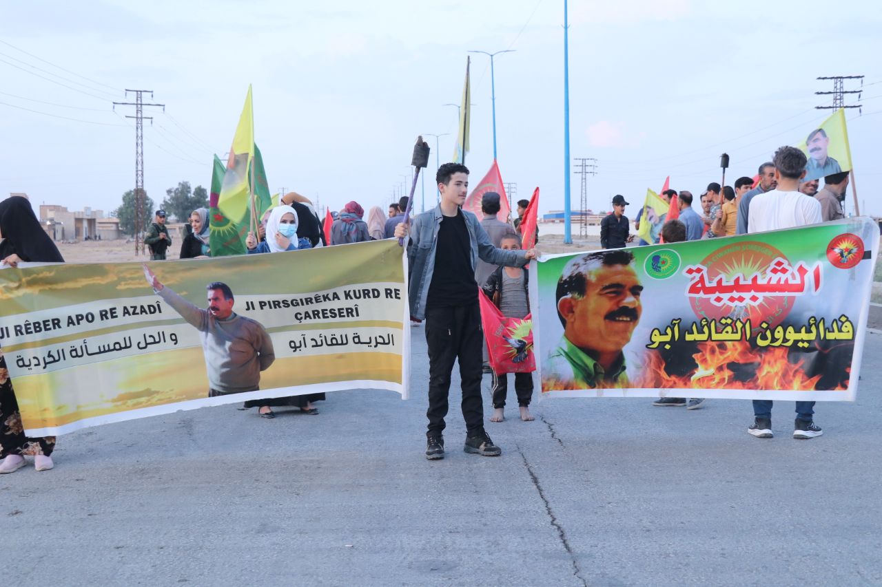 DÊRAZOR – Îro ber evarê Tevgera Ciwanên Şoreşger û Yekîtiya Jinên Ciwan ên Dêrazorê dijî ‘cezayê dîsîplînê’ ya nû ku li hember Rêber APO aliyê dewleta faşîsta Tirk hatiye damezrandin meşekê li dar xist. Rêber APO ku di bin tecrîdeke giran de ye, ji 25’ê Adarê 2021’an heya niha tu agahî nayê girtin. Niha hatiye diyar kirin ku 6 mehên din jî qedexeya hevdîtinên bi parêzeran re hat birin. Ciwanên û Jinên Ciwanên Dêrazorê ji ber we îro meşekê di bin dirûşmeyê ‘Ji Rêber APO re azadî ji pirsgireka Kurd re çareserî’ li dar xist û we şermezar kir.