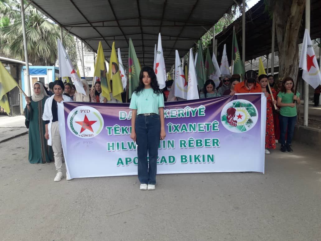 DIRBESÎ – Jinên Ciwan ên Partiya Yekîtiya Demokratîk (PYD) bi daxuyaniyekê tecrîda dewleta Tirk a li ser Rêber Apo şermezar kirin. Ev şermezarkirin di meşa jinên ciwan a li bajarê Dirbêsiyê de hat şermezarkirin. Bi dehan jinên ciwan beşdarî daxuyanî bûn.