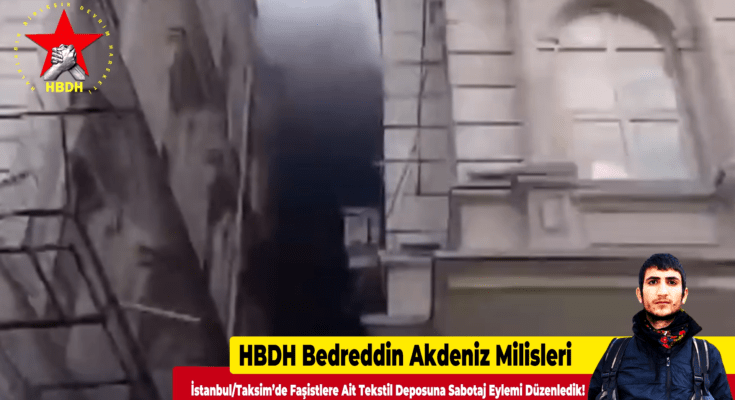 NAVENDA NÛÇEYAN – Milîsên HBDH (Tevgera Şoreşgerên Yekbûyî ya Gelan) ya Bedreddîn Akdenîz bi daxuyaniyeke nivîskî diyar kir ku li ser beşa ku wek embar tê bikaranîn li qata terasê avahiya 7 qatî ya li Kolana Taksîm Îstîklalê ya Stenbolê 15ê Gulanê saet derdora 16:30an de çalakiyeke sabotajê li dar xistin.