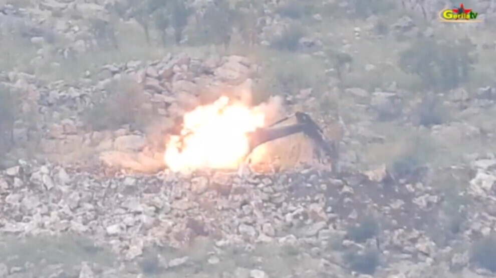 “26’ê Gulanê di saet 15.30’an de bi çekên giran li kepçeyên ku hewl didan li Qada Berxwedanê ya Girê Amediyê rê çêbikin, hate xistin û kepçeyek hate îmhakirin.”