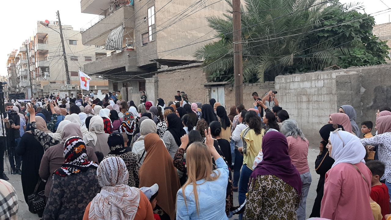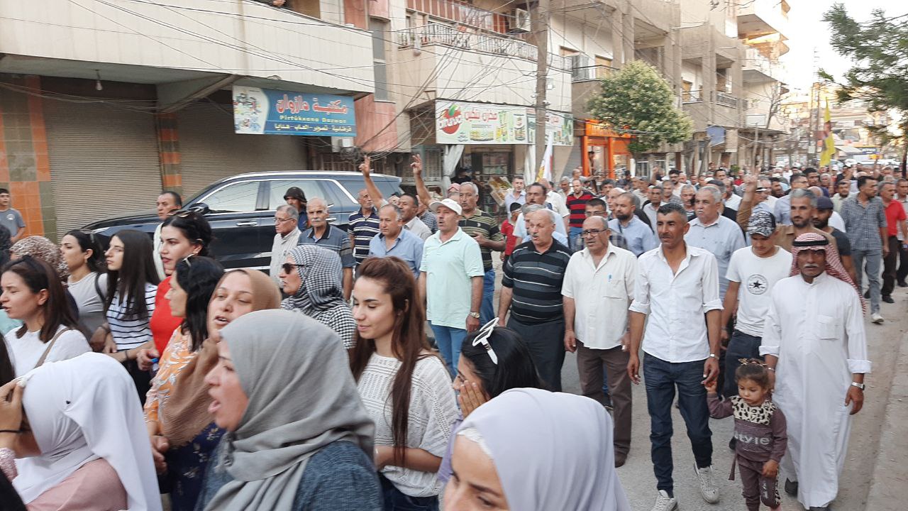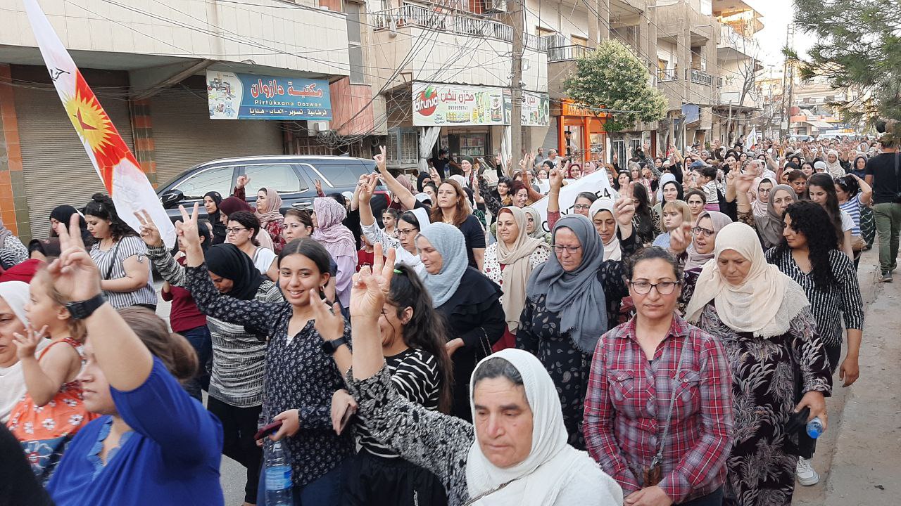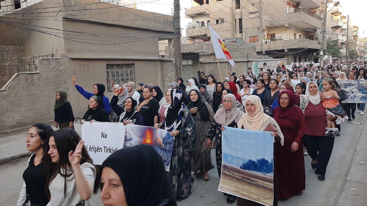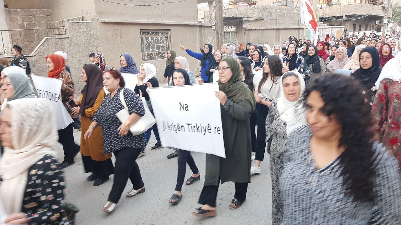 QAMIŞLO – Di van kêliyan de li bajarê Qamişloyê li dijî êrîşên dewleta tirk a dagirker ên li ser Bakur û Rojhilatê Sûriyê meşekî girseyî hat dest pê kirin.