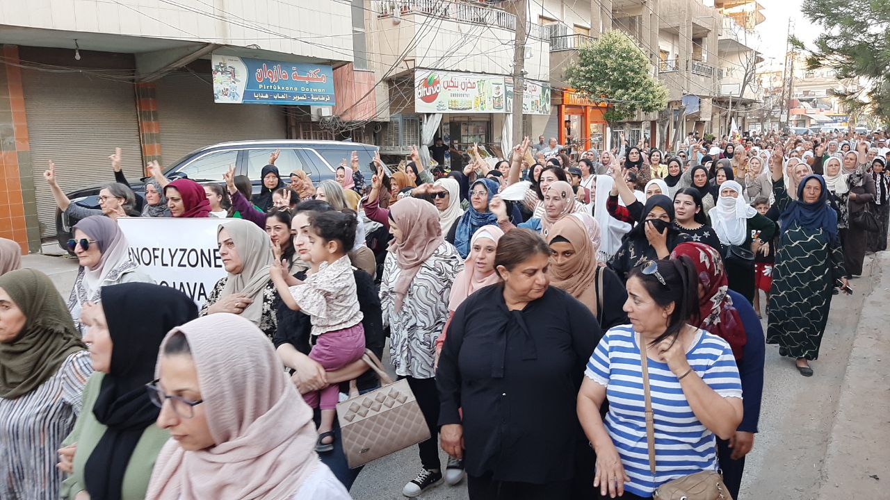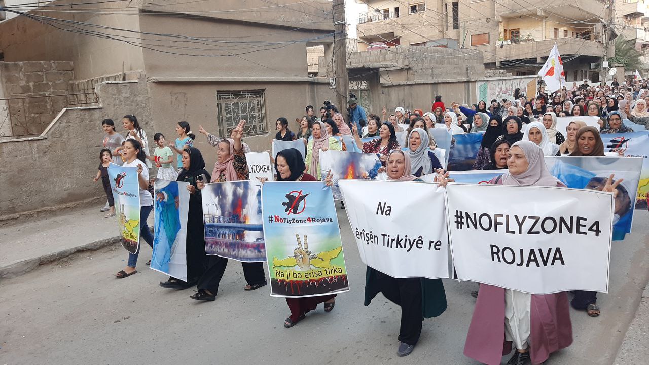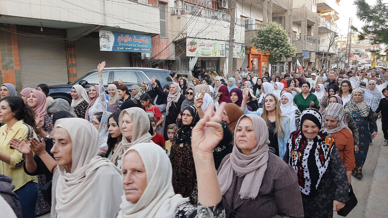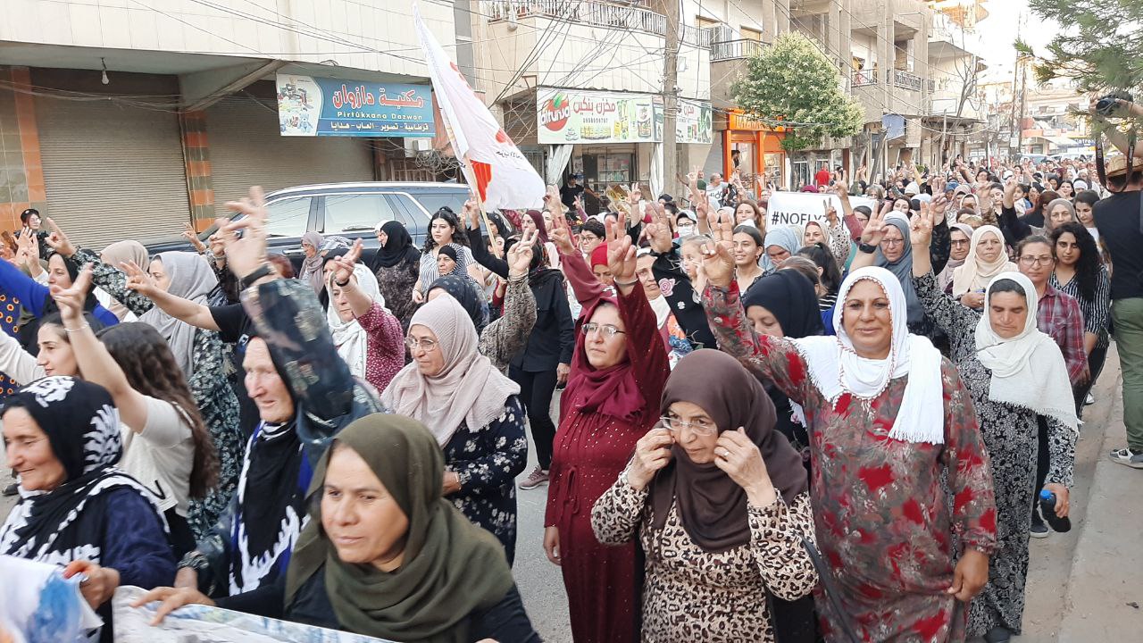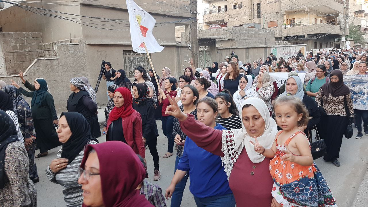 QAMIŞLO – Di van kêliyan de li bajarê Qamişloyê li dijî êrîşên dewleta tirk a dagirker ên li ser Bakur û Rojhilatê Sûriyê meşekî girseyî hat dest pê kirin.