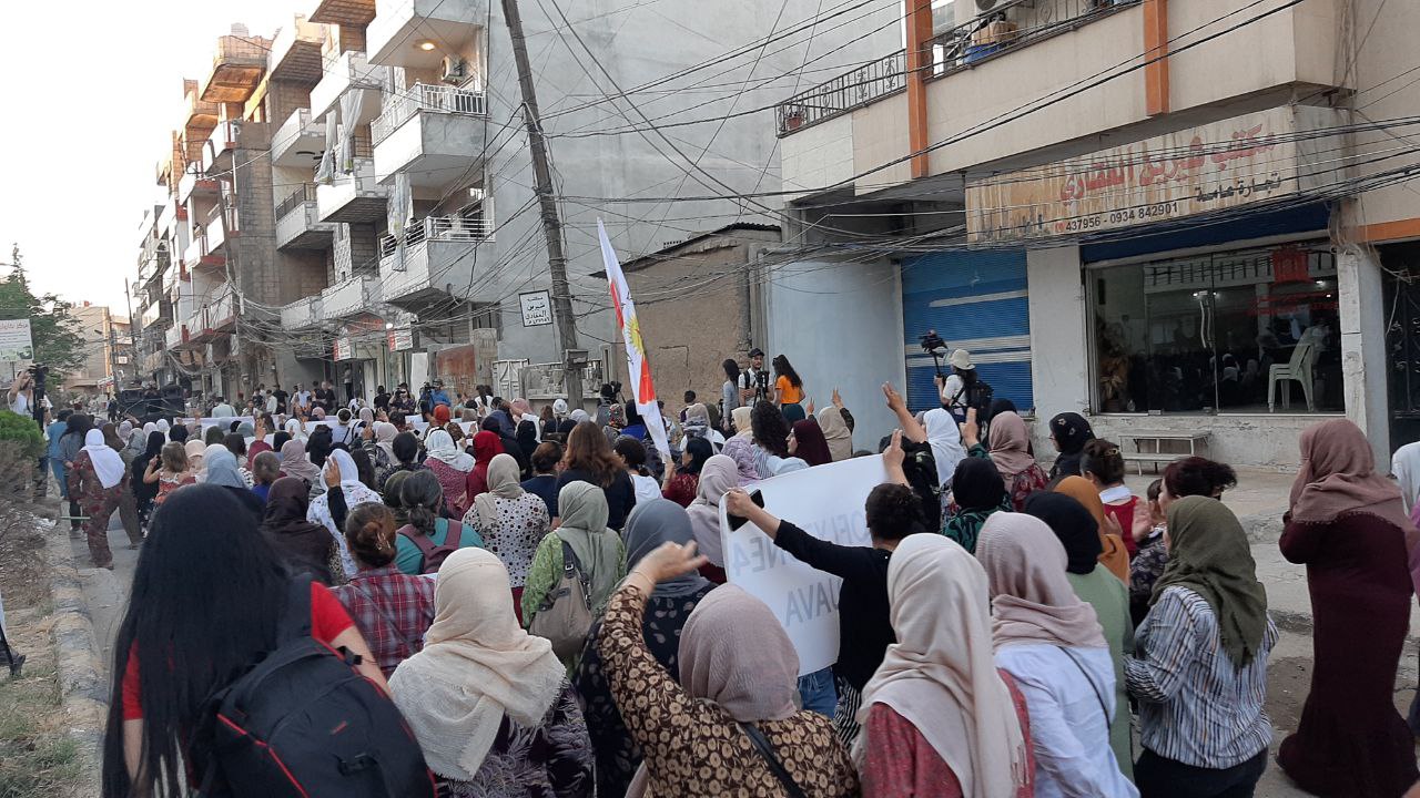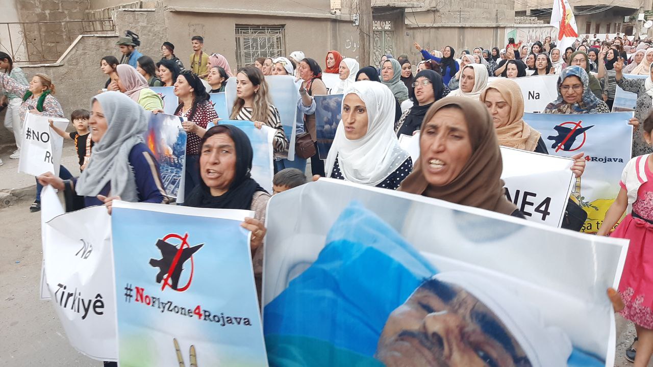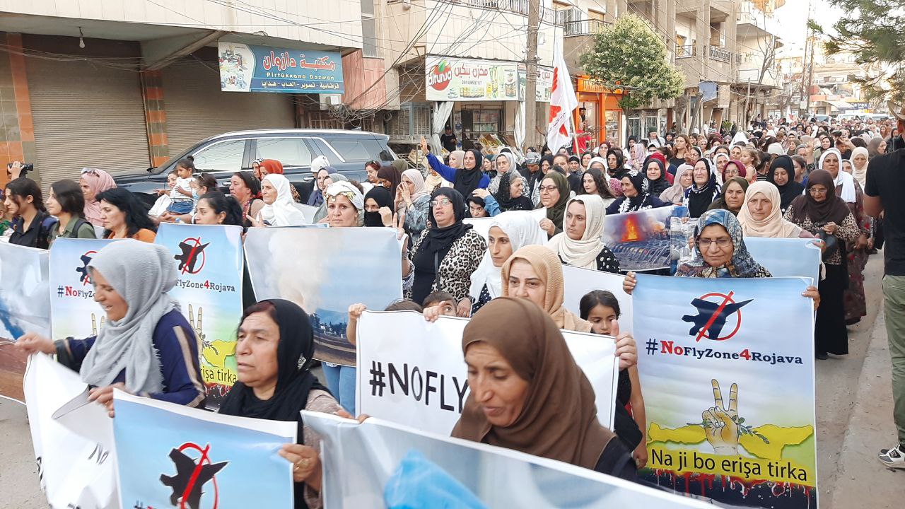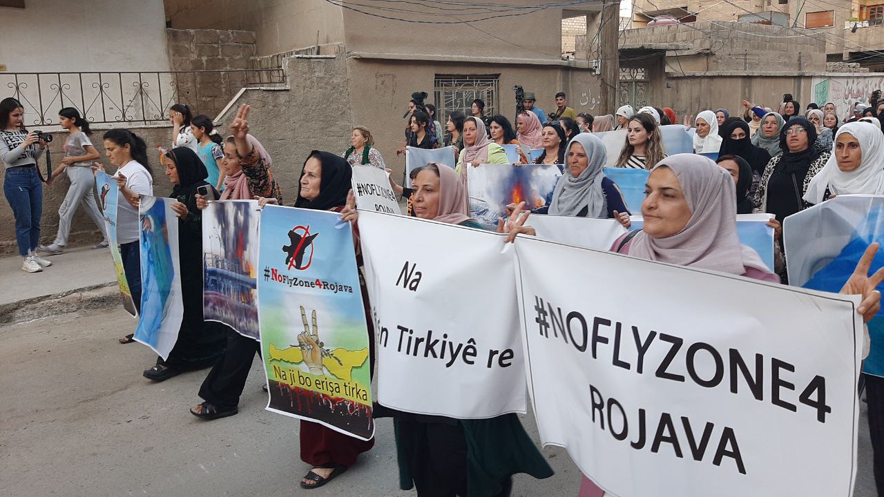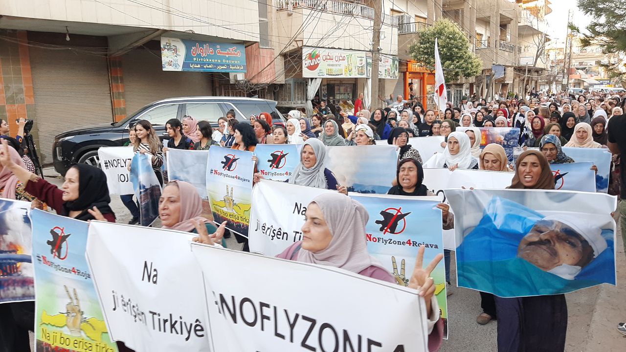 QAMIŞLO – Di van kêliyan de li bajarê Qamişloyê li dijî êrîşên dewleta tirk a dagirker ên li ser Bakur û Rojhilatê Sûriyê meşekî girseyî hat dest pê kirin.