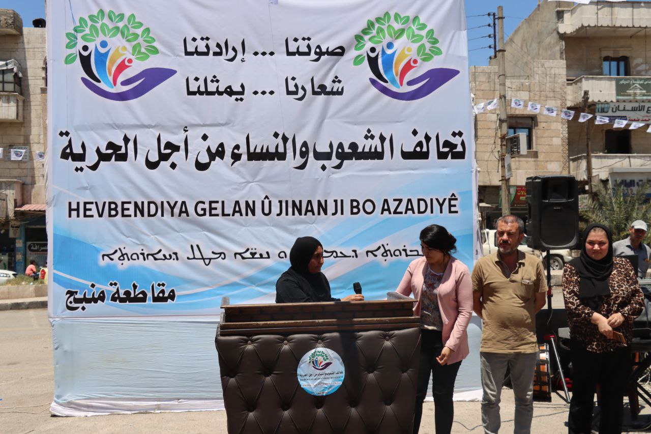 MINBIC – “Hevbendiya Gelan û Jinan ji bo Azadiyê” beriya destpêkirina çalakiyê konên propagandayê ji bo hilbijartinên şaredariyan li Minbicê li dar xist. Rêveberiya Xweser komîte û saziyên girêdayî wê, bi Rêveberiya Şaredariyê, Şaredariya Gel û Rêveberiya Perwerdeyê û rêxistinên civaka demokratîk, saziya tenduristiyê û saziyê perwerde beşdarî çalakî bûn.