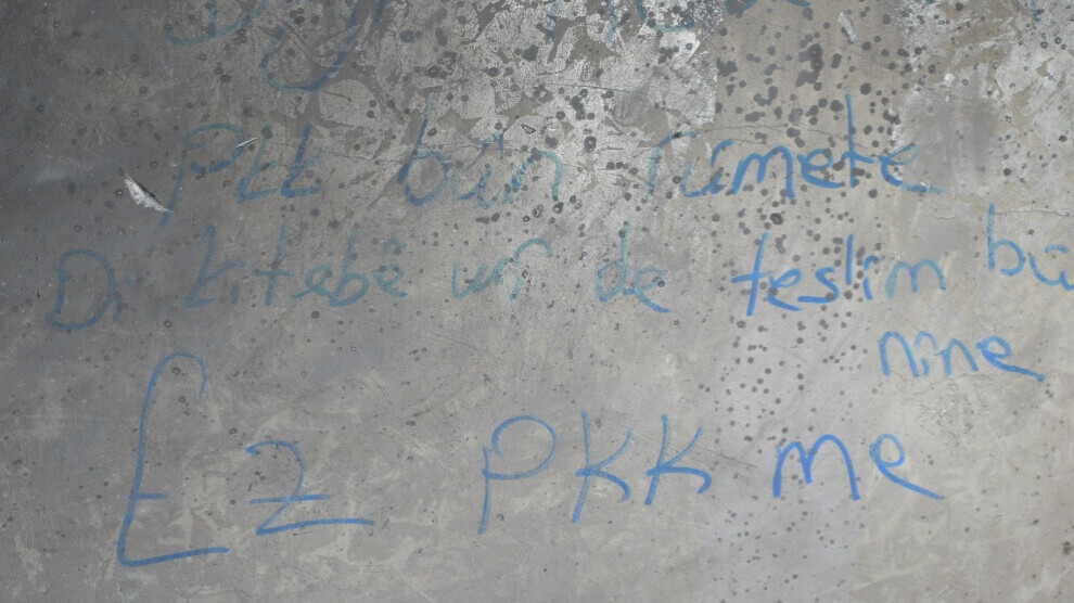 Aso Ferzad (Seyît Perendegel) ê ku 18’ê Mijdara 2022’yan li navçeya Gimgim a Mûşê şehîd bû, di kêliyên xwe yên dawî yên li mala ku hatî dorpêçkirin de, li ser dîwar ‘Ez PKK’î me… di pirtûka me de teslîmbûn tineye’ nivîsand