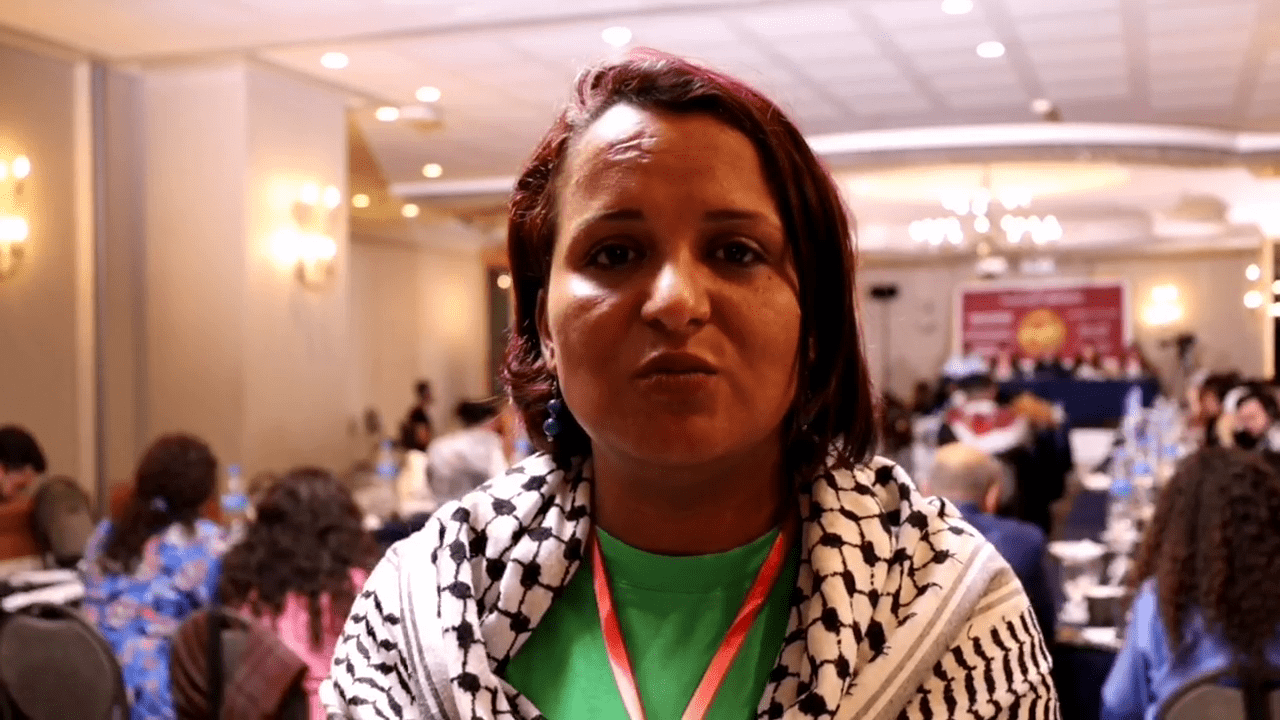 “Navê min Cevahîr e, ez ji Tûnisê me. Ez wek jineke sosyalîst beşdarî vê konferansê bûm. Weke hemû welatan, li Tûnisê jî pirsgirêkên aborî û civakî yên ciwanan hene. Piraniya koçber dibin, piraniya ciwanan xewna çûyinana bakurê cîhanê, an jî Ewropa, dikin. Ev jî encama dagirkeriya gelê Tûnisê û gelên li Tûnisê dijîn e. Weke li welatên din, yên ku herî zêde ji şer, zext û tundiyê zerarê dibînin jin in. Niha hinekî baştir e, têkoşîna me ya azadiyê dewam dike. Armanca me ya tevlîbûna vê konferansê ew e ku em bi rêxistinên jin û ciwanan re têkiliyan deynin, wan zêdetir nas bikin, ji têkoşîna wan a heyî ezmûnan werbigirin û ji hev fêr bibin. Di dawiyê de, ez difikirim ku girîng e ku bi hev re tevbigerin û planên hevbeş pêşbixin.”
