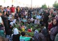 Şêniyan ku wêneyên zarokên xwe yên şehîd hilgirtin, gul li ber gorên şehîdan danîn, ayatên Quranê xwendin, dûa kirin û şêranî jî belav kirin.
